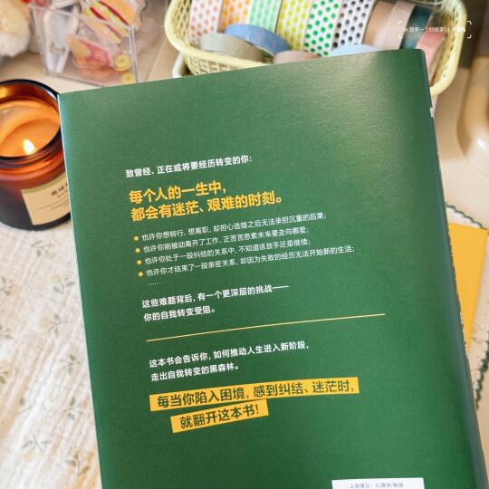 当我们因为种种事情进入人生的黑胡同黑森林的时候,会不断到处碰壁,越想脱离越是看不清出路在哪,自我转变之路就像是摸着石头过河,而这本书把每个石头的站点都标注清楚了,告诉你目前处在什么阶段、将要经历什么、朝哪个方向走才能找到自己的出路。