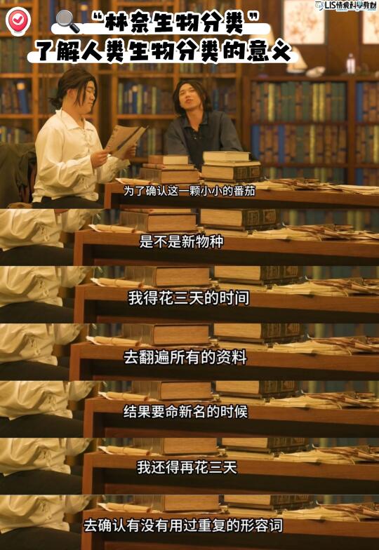 ✅衔接“生物分类”和上节课的“校园生物大搜索”,从科学史上来看,是【物种大爆炸】,使得【物种分类】就像图书馆的书多起来就需要整理分类一样变得很有必要