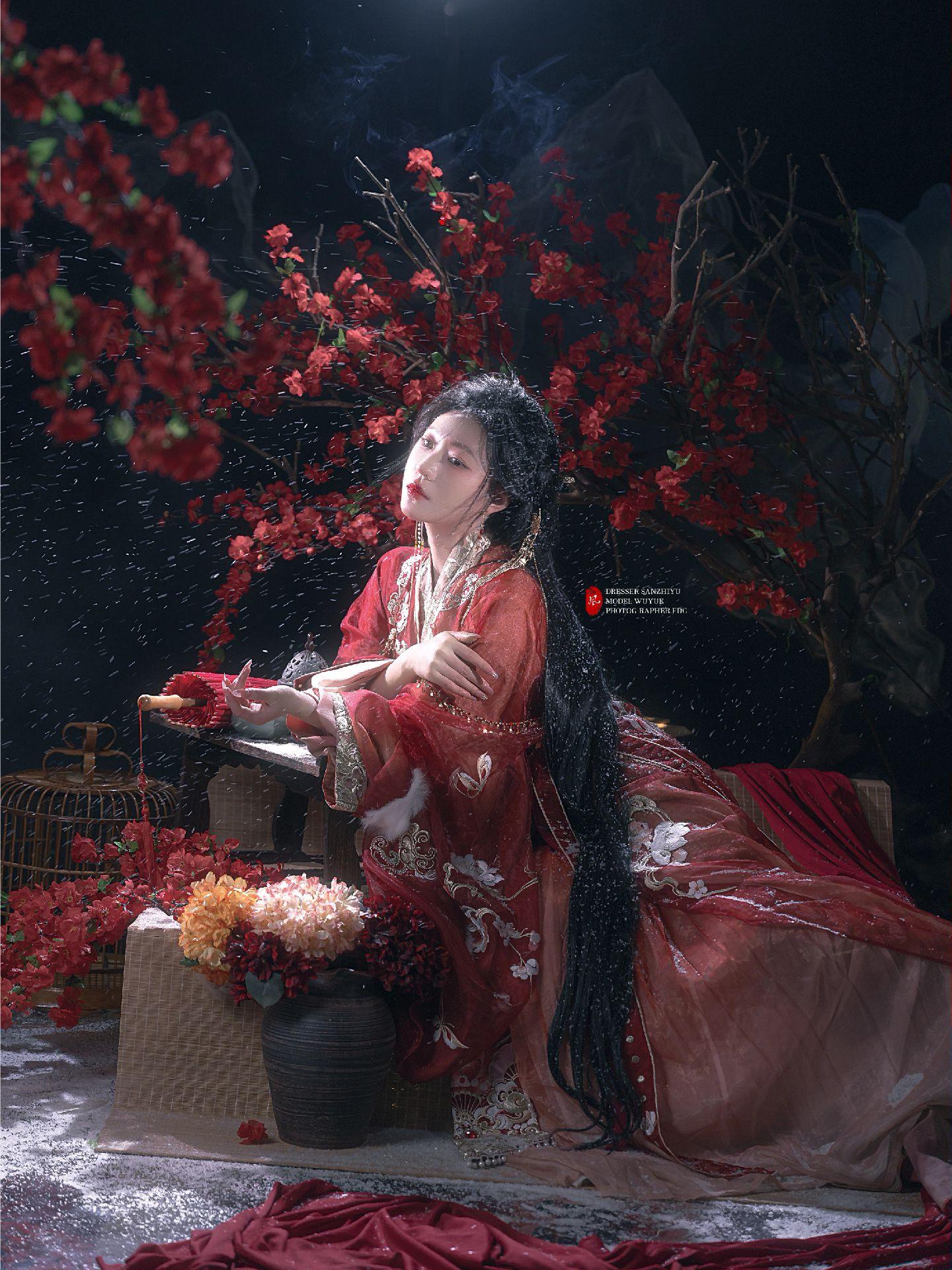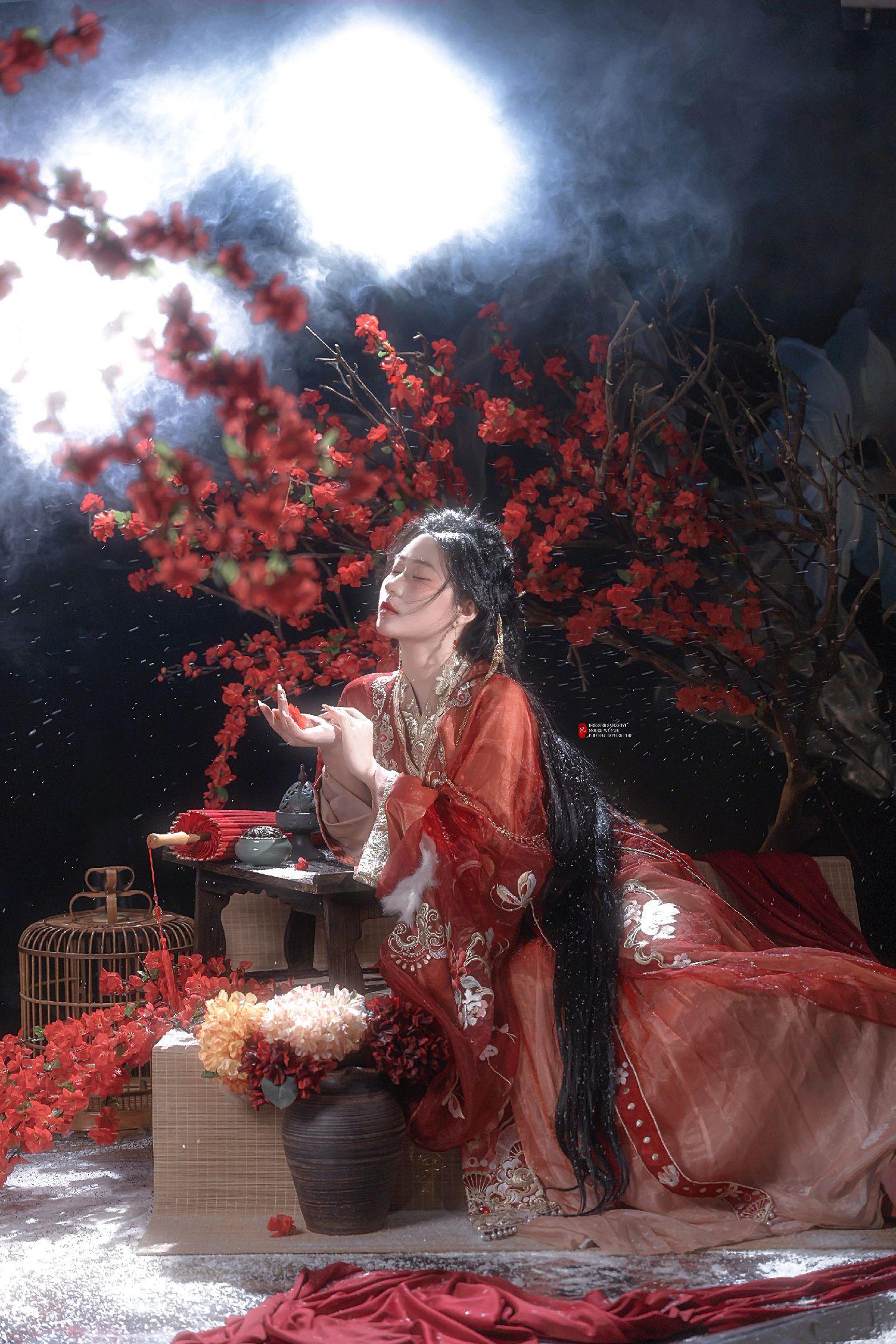 「青烟缠金钗,红裳融花影」。脑洞妆