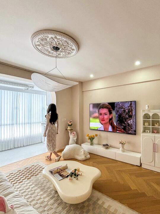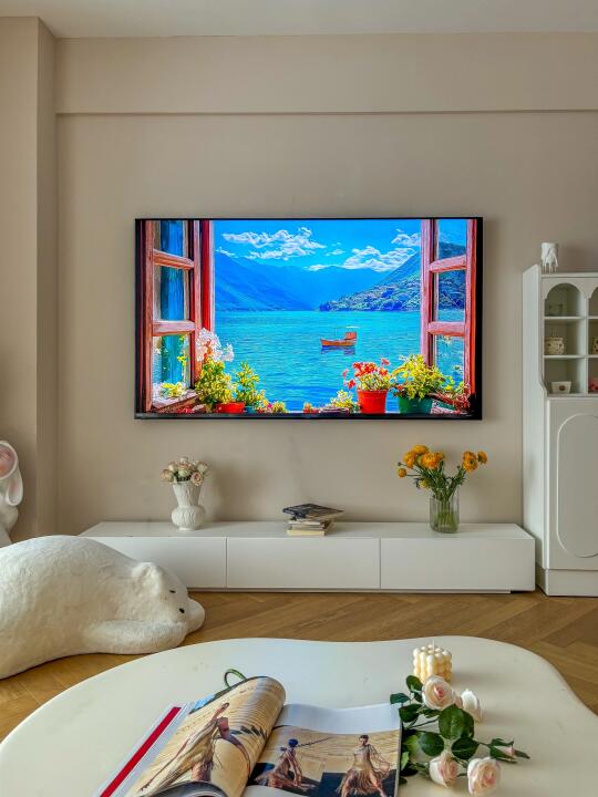 画面看起来不会泛白,是那种很纯粹的黑色感!就算我们白天不拉窗帘,追剧也不会反光,显象柔和,久看不累眼~