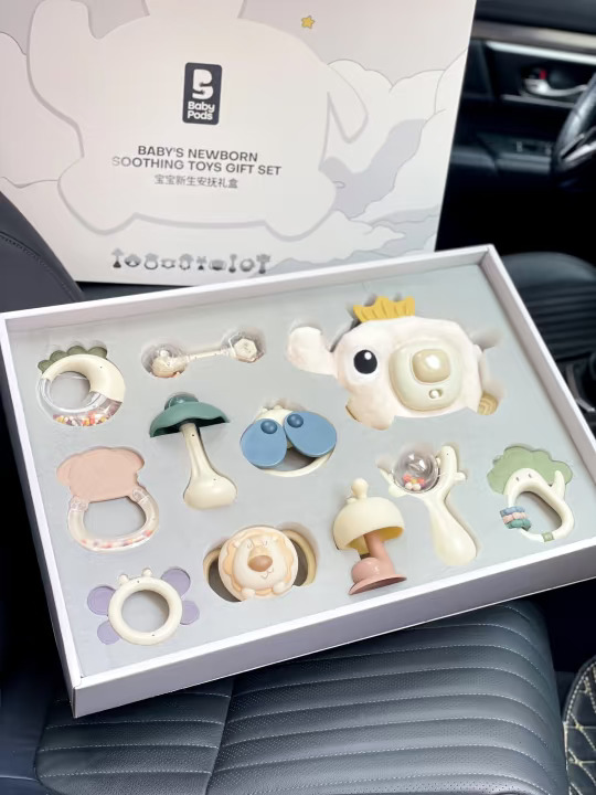谁懂啊姐妹们,这个礼物🎁质感绝了,打开的时候我都被惊艳了 送人好有面子,作为宝宝的第一份见面礼很适合,实用还有颜值,刚需还能拿得出手 里面有很多安抚玩具,还有牙胶等 👶🏻宝宝陪玩、哄睡、安抚直接一套搞定啦!而且给娃用着也很放心 可以放心让宝宝啃咬,好玩还能锻炼抓握能力,他们都夸我选得好🤭 而且还有礼盒袋,提着这个去送礼回头率满满的 听我的,谁生娃要送礼物的都给我去冲它