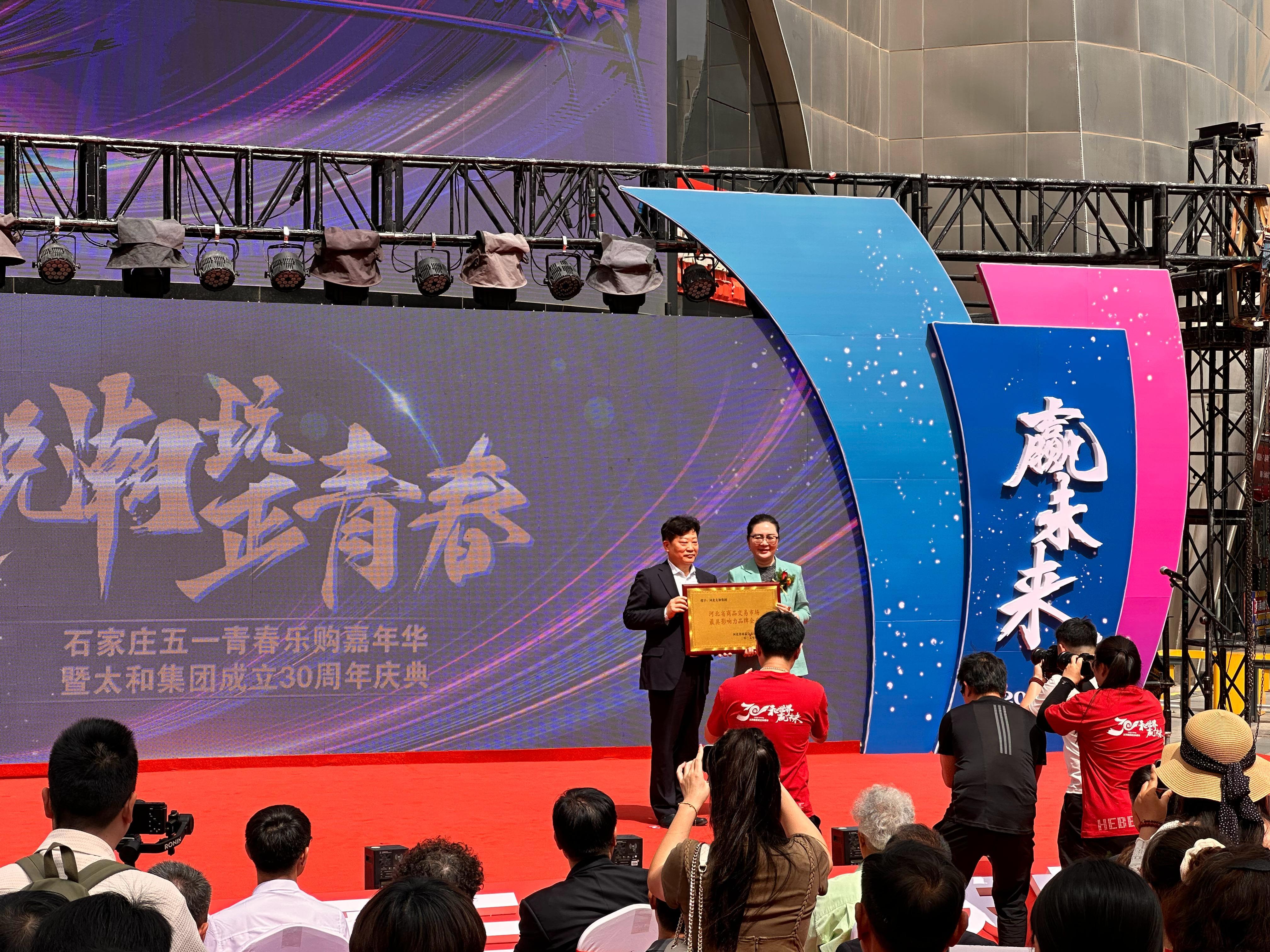 2025 年 4 月 30 日,繁花似锦的时节,各界精英汇聚湾里庙,共同见证这场盛大庆典。开幕式上,太和集团总裁李美璇回顾 30 年征程,从红军街起步,到如今横跨商业、地产和金融领域,太和集团始终秉持 “天适地载、大道源和” 理念,在时代浪潮中奋勇前行,不仅为员工和经销商搭建广阔平台,还为区域经济发展贡献力量。此次庆典上,太和集团荣获 “河北省新型数字产品示范市场”“河北省商品交易市场最具影响力品牌企业” 两项重磅荣誉,这是对其 30 年发展成果的高度认可。