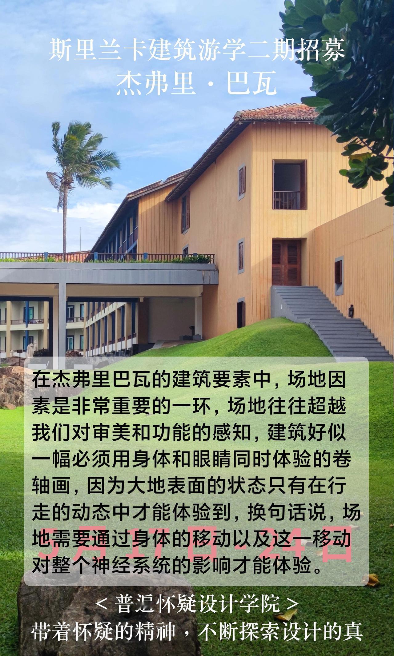 朋友圈开始刷屏了,又有一波人去斯里兰卡了。5月17号-24日巴瓦游学,有朋友一起的吗?最后3个名额 杰弗里巴瓦 斯里兰卡游学 室内设计师 软装设计师
