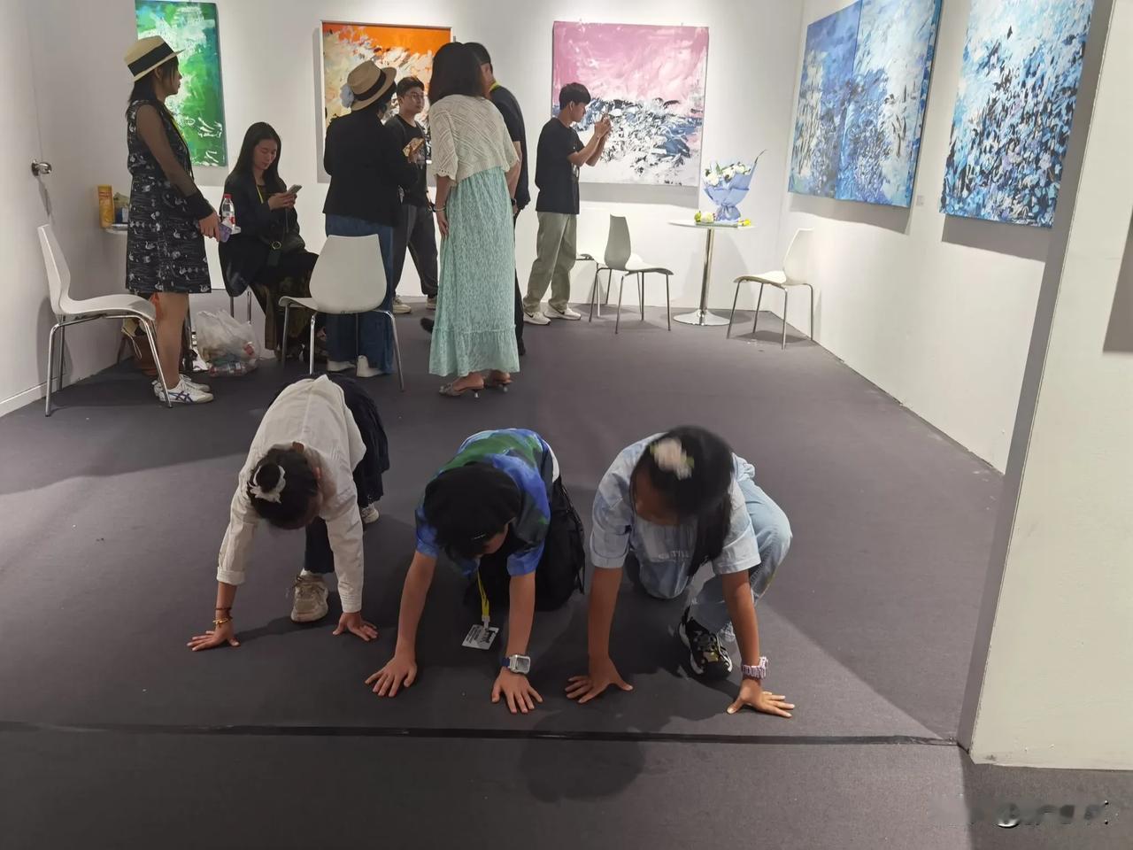 昨天下午3-点,赶在广东国际艺术周尾声匆匆逛了一圈,尽管艺术周才有两周岁活力四射,主办方的创新能力给我两点感受: 其一,展位上只标有艺术家的个人名字,这与其它展览不同,标签简历占有长长的大海报,倡导的展览是以作品说话。 其二,启用小艺术家,艺术不是成人的专利。 这次就启用二位小艺术家,13岁的李子夜(佛罗伦萨国际青少儿美术展一等奖),再有10岁的刘小漾。我在这两个展位上停留的时间较长,跟他们的家长聊天是:如何培养孩子绘画特长的? 两个家境各有不同,但二个孩子绘画天赋是相似的。李子夜的母亲是位校长,单亲培养孩子的。刘小漾的父母是理工生家境优越,孩子6岁自习绘画,三口之家去过南北极,刘小漾回来后就能凭记忆画出如此杰作的天才小画家。他们不聘美术老师没有干预,让孩子大胆去画她们心中那幅画…… 回来的路上我在想:艺术是组织机构教出来的吗?两个孩子就是例子,再看看敦煌壁画、山西那些壁画、小西天的雕塑等等,这些就连作者名字都没有,皆如此惊讶……图2-5 李子夜,图6-8 刘小漾,图9刘小漾(中)跟小伙伴玩腑卧撑。 艺术展 当代艺术 书画 油画 国画 艺术展打卡攻略 艺术 视觉艺术