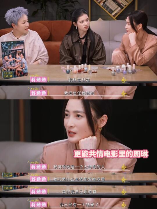 现实中的蒋勤勤非常信任母亲,自打来到北京工作就和母亲为伴。而面对自己的孩子,她也早早学会放手给他们自己的空间