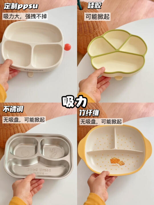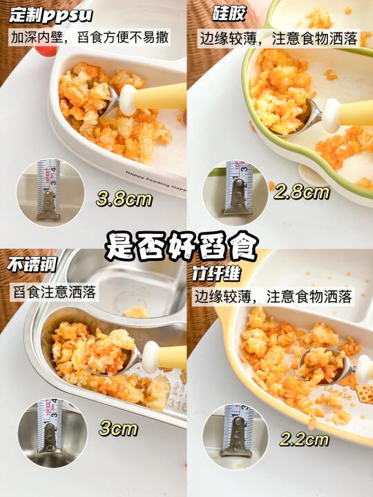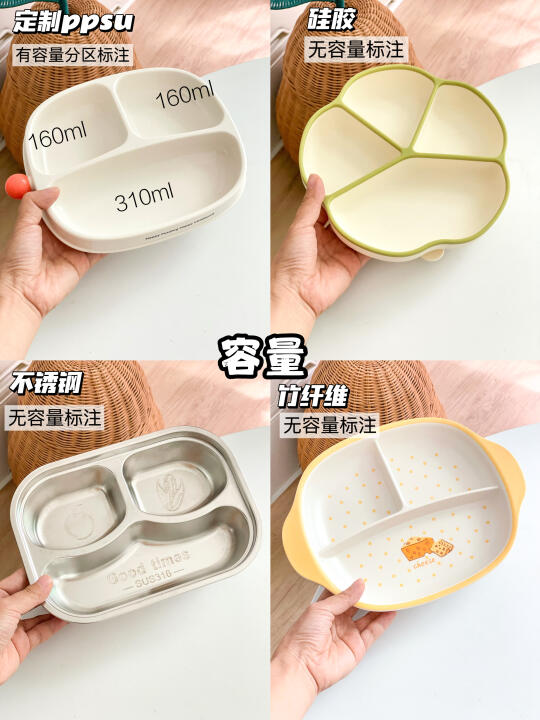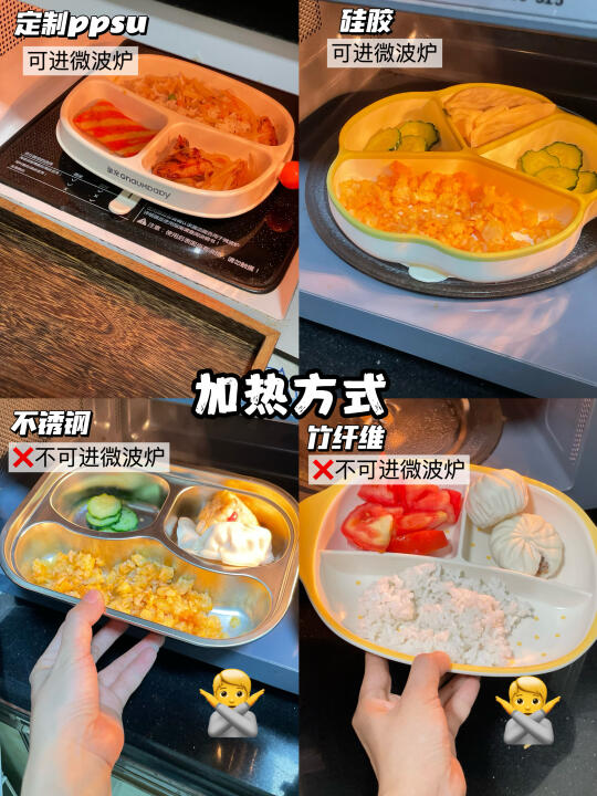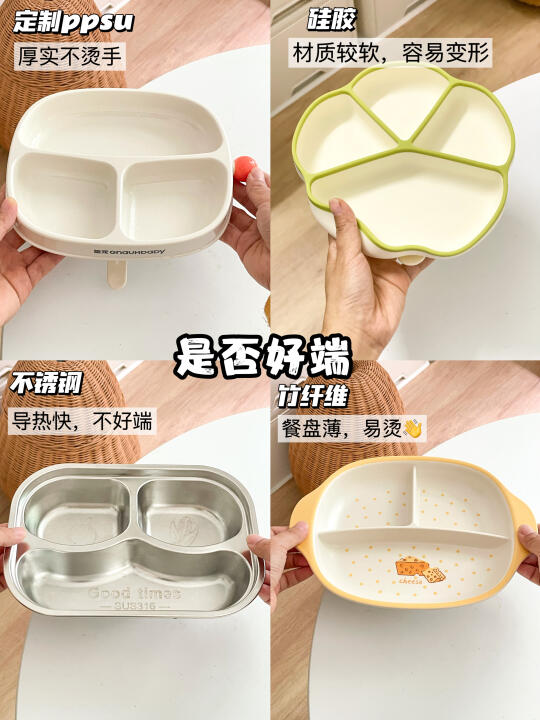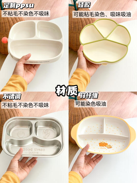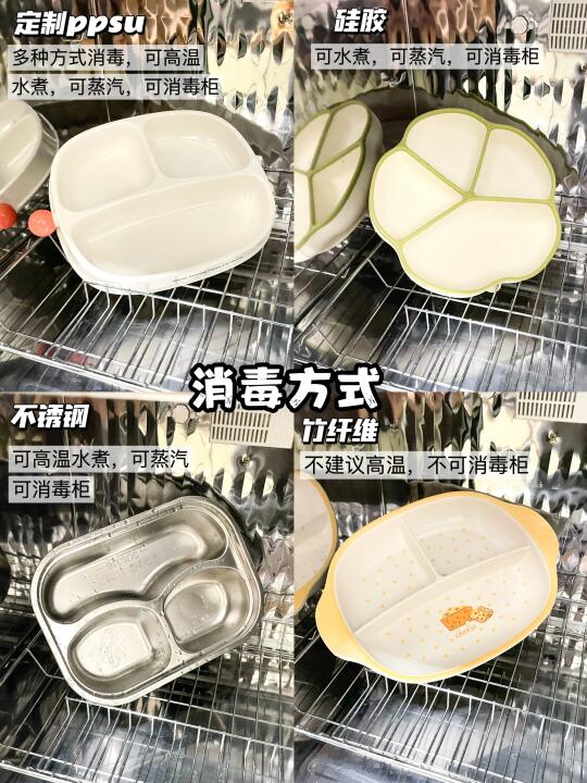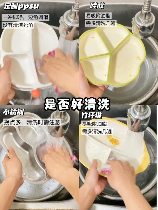 🌟要好清洗不易吸附油污的,毕竟每天家务和带娃都是妈妈的重点工作,好清洗的餐盘不仅省力还省心,PPSU的可以放消毒柜,也可以水煮消毒,蒸汽高温都可以,老方便了