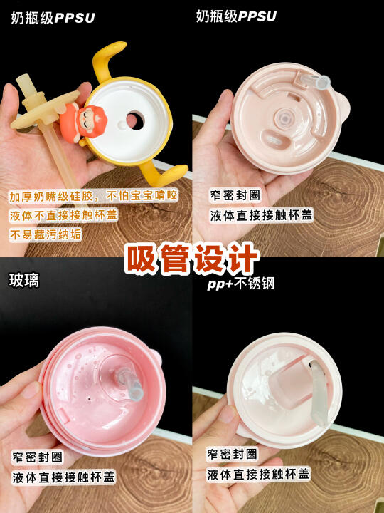 孩子喝奶过程,有时候会啃咬吸管,买加厚奶嘴级硅胶吸嘴,不用担心孩子啃咬! 一体式密封盘,不会直接接触杯盖,不会有污垢难清洁🧽
