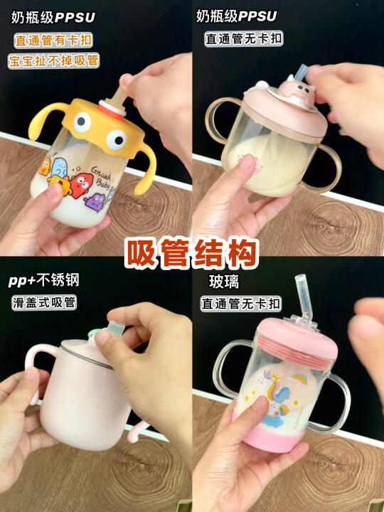 买直通吸管有卡扣的,这样孩子拉扯也不会掉😄也相对更卫生点