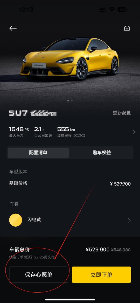 [拔草R]3、重点来了:到时候选配完成后记得保存心愿单!目前YU7还没得选,可以参考SU7的页面,然后进入预购填车页面提前填写信息!