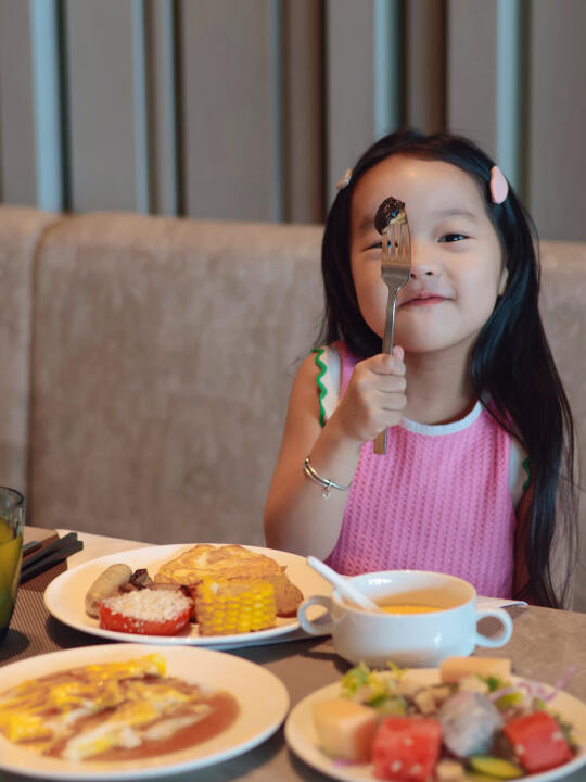 🍳 自助早餐:品类丰富,选择超级多!除了常规中西式,强烈推荐当地特色沙茶面、肠粉、粿品、还有女儿喜欢的奶香玉米🌽羹~