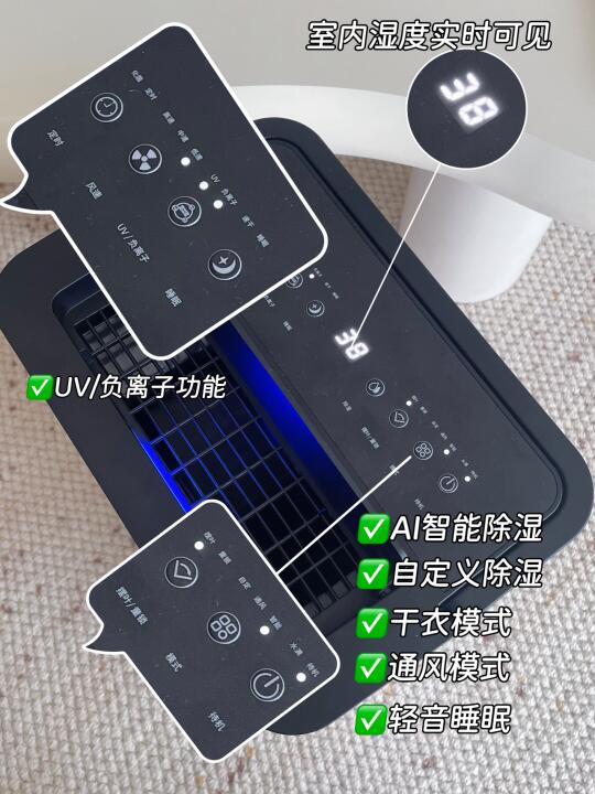 💪除湿功能的自动风摆很给力,能快速让室内空气循环起来~梅雨季回南天,两个小时就能抽出一桶水,真太实用了!要是觉得倒水麻烦。