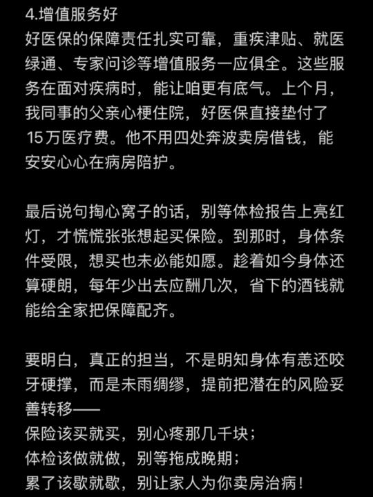 当癌症离年轻人的生活越来越近时,一些患病的“打工人”,却依旧在岗位上勤勤恳恳、兢兢业业。这种“带癌上班”的挣扎背后,是医保断缴的恐惧与商业保险缺失的困境 当真的不幸遭遇这类情况,我们唯一能做的——就是趁健康时用商业医疗险筑牢防线。 我给自己和爱人都配置了好医保·长期医疗(旗舰版),每年保费几百块起,关键时刻却能撬动四百万保额 (*本产品由中国人保健康保险公司承保,具体费率及保单金额以实际投保为准)