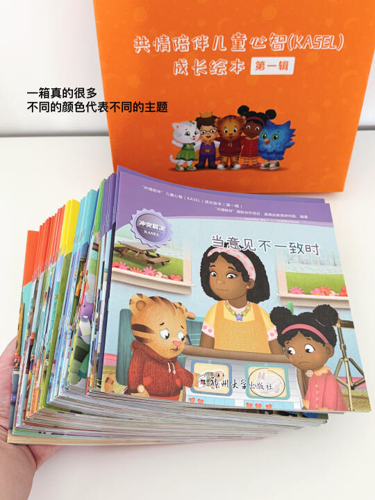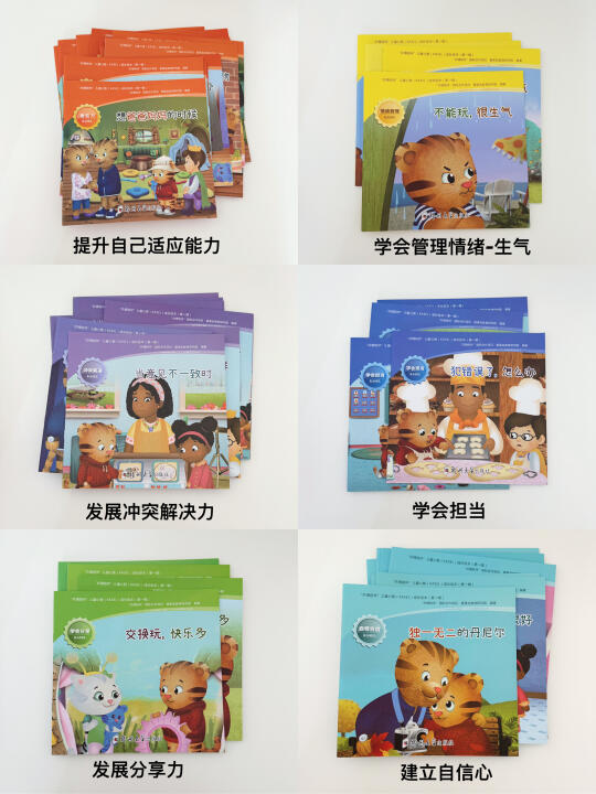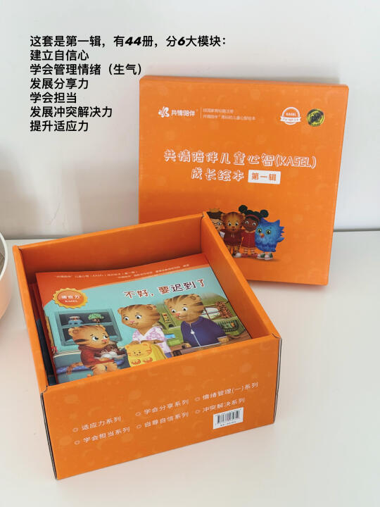 第一辑有44册,分6大模块:建立自信心、学会管理情绪(生气)、发展分享力、学会担当、发展冲突解决力、提升适应力。