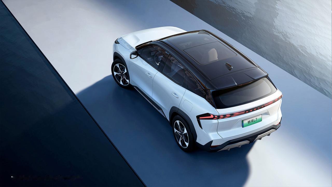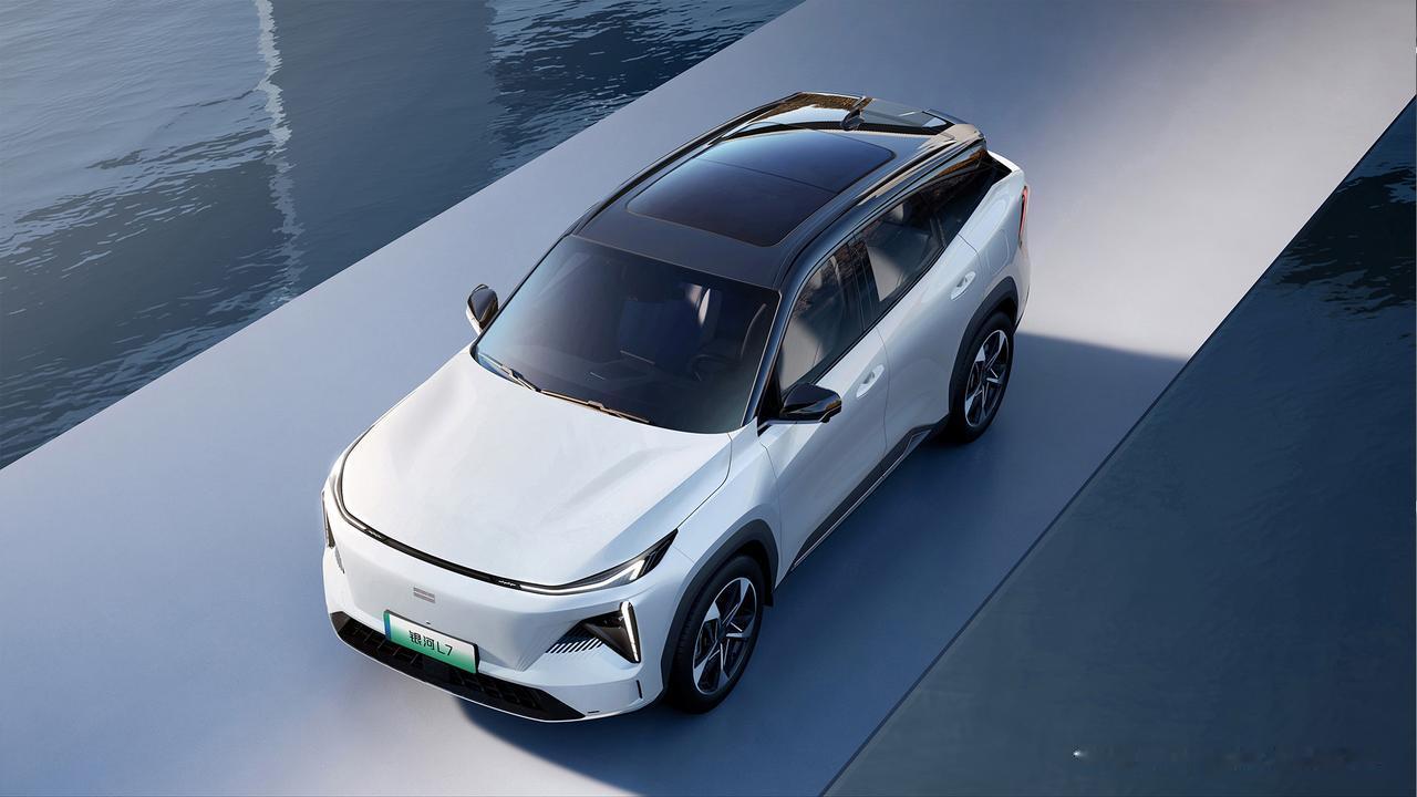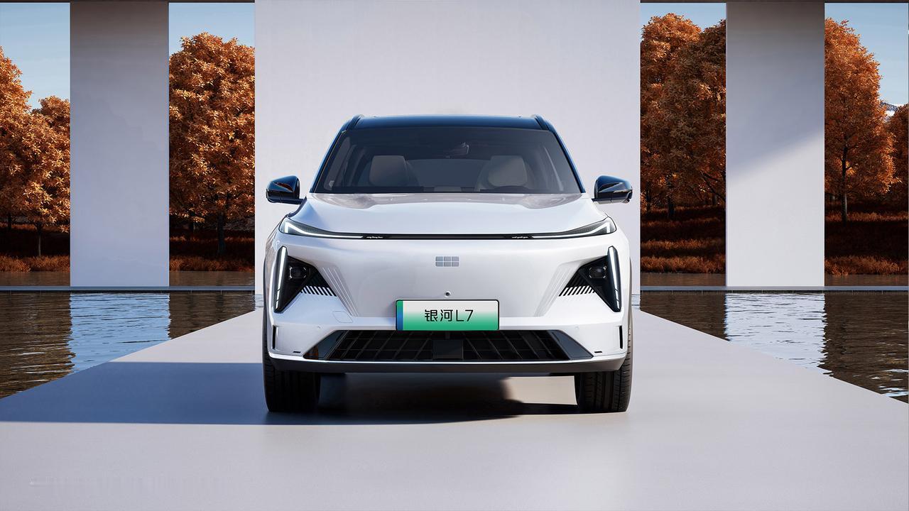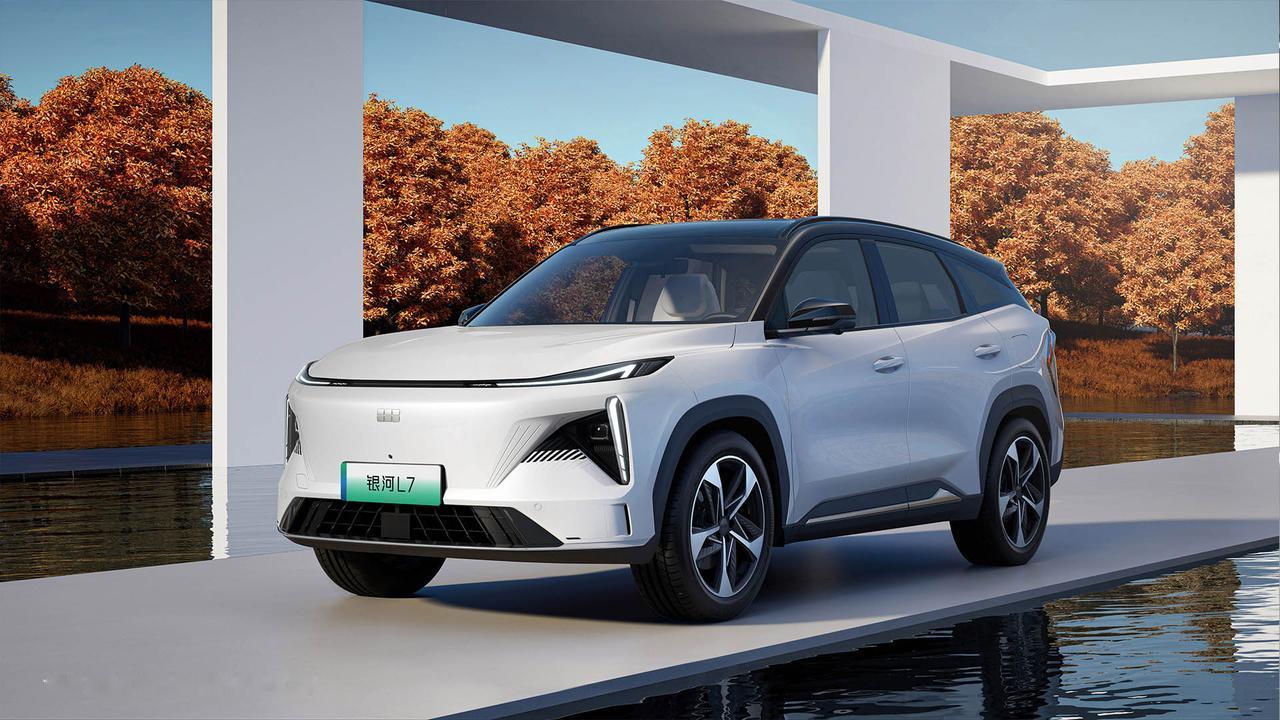 【吉利银河正式发布 新一代雷神电混8848 综合续航1370Km】 银河L7是一款插电混动车型,搭载新一代雷神电混8848,最高热效率44.26%,百公里亏电油耗5.23L,CLTC综合续航里程1370Km。百公里加速6.9秒,极速可超过200km/h。外观设计上,银河L7的车头中间部位采用封闭设计,看起来像是一款纯电车。车身尺寸方面,银河L7长宽高分别为4700mmX1905mmX1685mm,轴距为2785mm,属于紧凑型SUV的尺寸。
