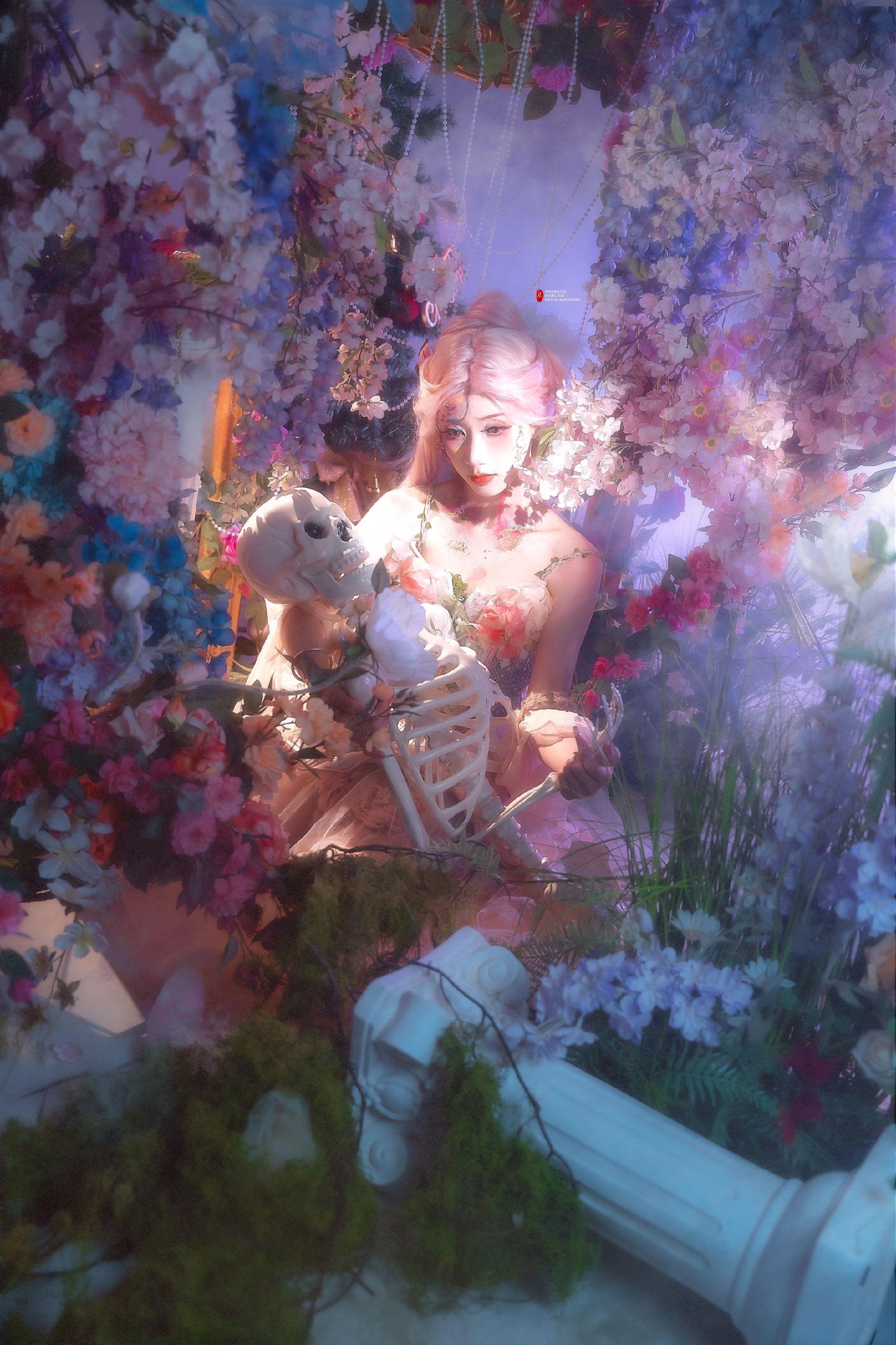 画皮娘子某,本工绘事。尝自描眉黛,铅粉扑额竟生鳞纹,原是爱美妖,胭脂着面即转青