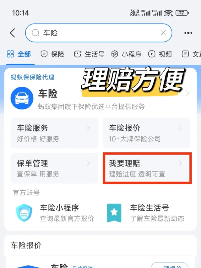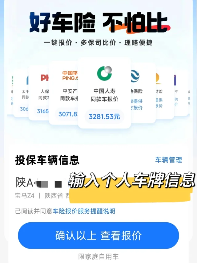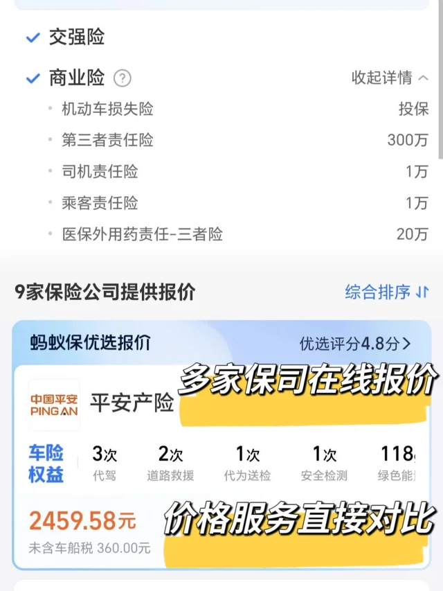 👉大家买车险是不是经常遇到不同保司报价不一样的情况?🤔甚至同一家保司不同代理人给的价格都不一样❌返点金额也不明确,很多小白都被搞得一头雾水经常吃哑巴亏😷。还有很多保司捆绑销售乘员险,不买乘员险不给出保单,价格也是完全不透明,各种乱象真的让人无语😡 那么有没有既方便又便宜比较靠谱购买车险的渠道?当然有,学长作为玩车多年的汽车博主给大家分享下我平时买车险的渠道,就是支付宝的蚂蚁保车险👍 蚂蚁保车险的优势✅ 1⃣【价格透明】蚂蚁保车险是蚂蚁集团旗下保险代理平台,和超10家主流大保司有合作,包括人保、平安、大地、众安等。输入信息后多家保司同时在线报价,大家可以直接对比价格和服务,选择更具性价比的保司。 2⃣【无捆绑销售】大家输入车辆信息后对套餐不满意,可自行根据需求调整险种和保额,无任何捆绑套餐,避免花冤枉钱。 3⃣【理赔方便】蚂蚁保车险支持一键报案,报案出险时,支持免填写直接带出车牌号和自动定位事故地点,最快10s响应,3分钟分配专员处理,省时又省心 👉具体如何购买: 1、打开支付宝搜索“车险” 2、点击车险报价 3、输入投保车辆信息 4、确认or调整险种套餐和保额 5、对比报价选择需要投保的保司 6、确认付款 本产品由平安产险、太平洋产险、众安保险、安盛天平、申能财险、太平财险、中华保险、中国人寿、人保财险、大地保险、阳光财险、浙商财险、泰康车险、国泰产险承保,具体费率及保单金额以实际为准