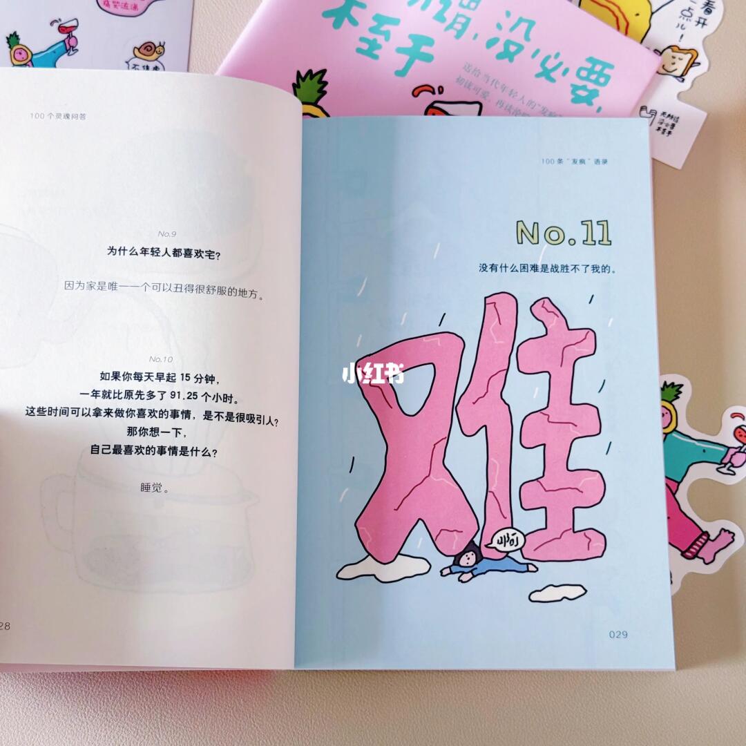 看题目就知道这本书有多“颠”翻开书还是被它惊讶到了!书中有100条发疯语录、100条不正经回答、100件可以做的恢复能量的小事,还有45句让人洋洋得意的彩虹屁!