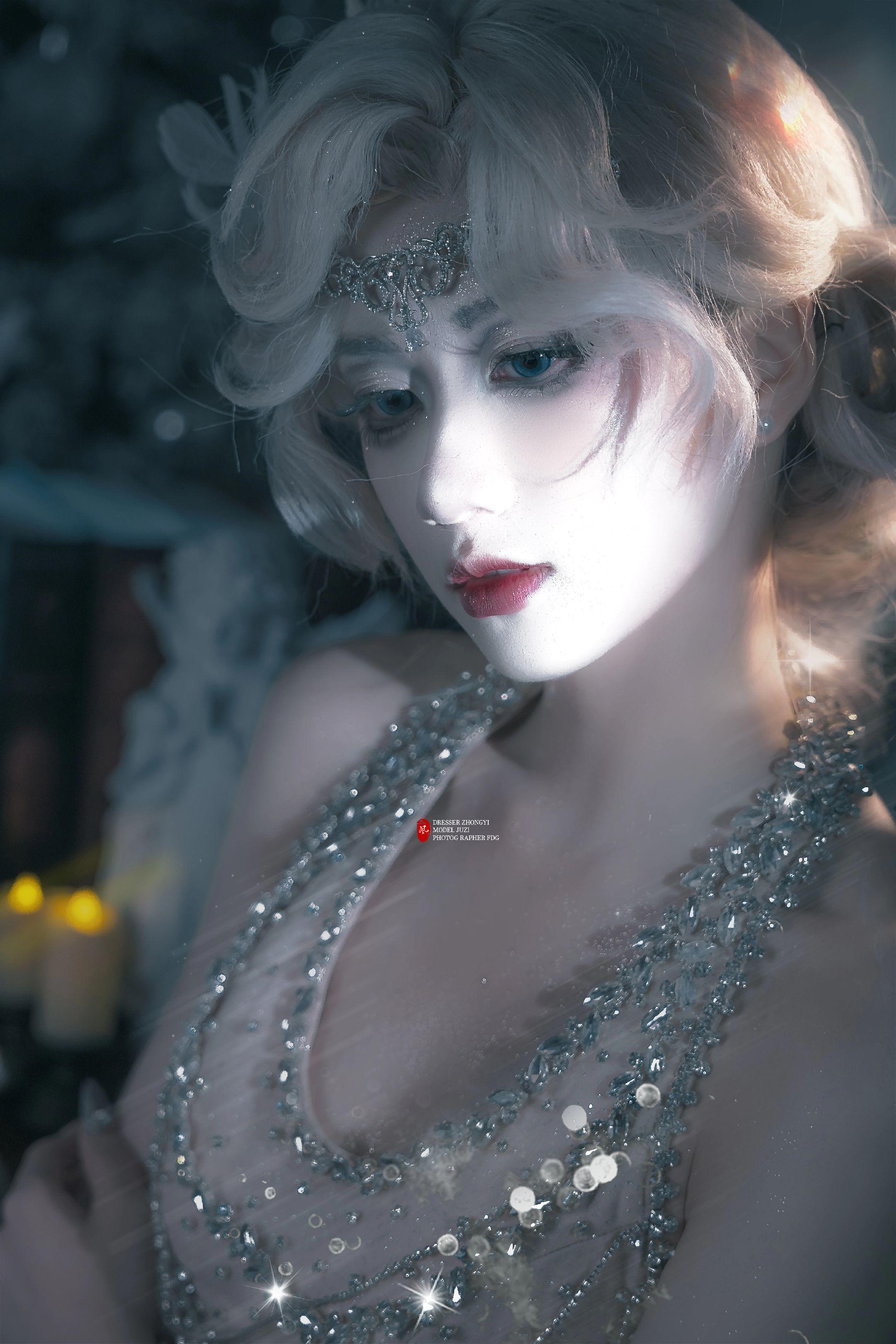 画皮娘子某,本工绘事。尝自描眉黛,铅粉扑额竟生鳞纹,原是爱美妖,胭脂着面即转青