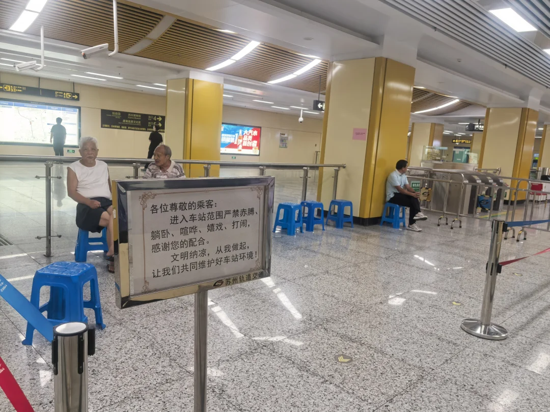 2️⃣没想到地铁站里竟然温馨的设置了纳凉区,还提供凳子,真正实现了“冷气不流外人田”[赞R]全国其他地方地铁还有这么友爱💖的区域么?