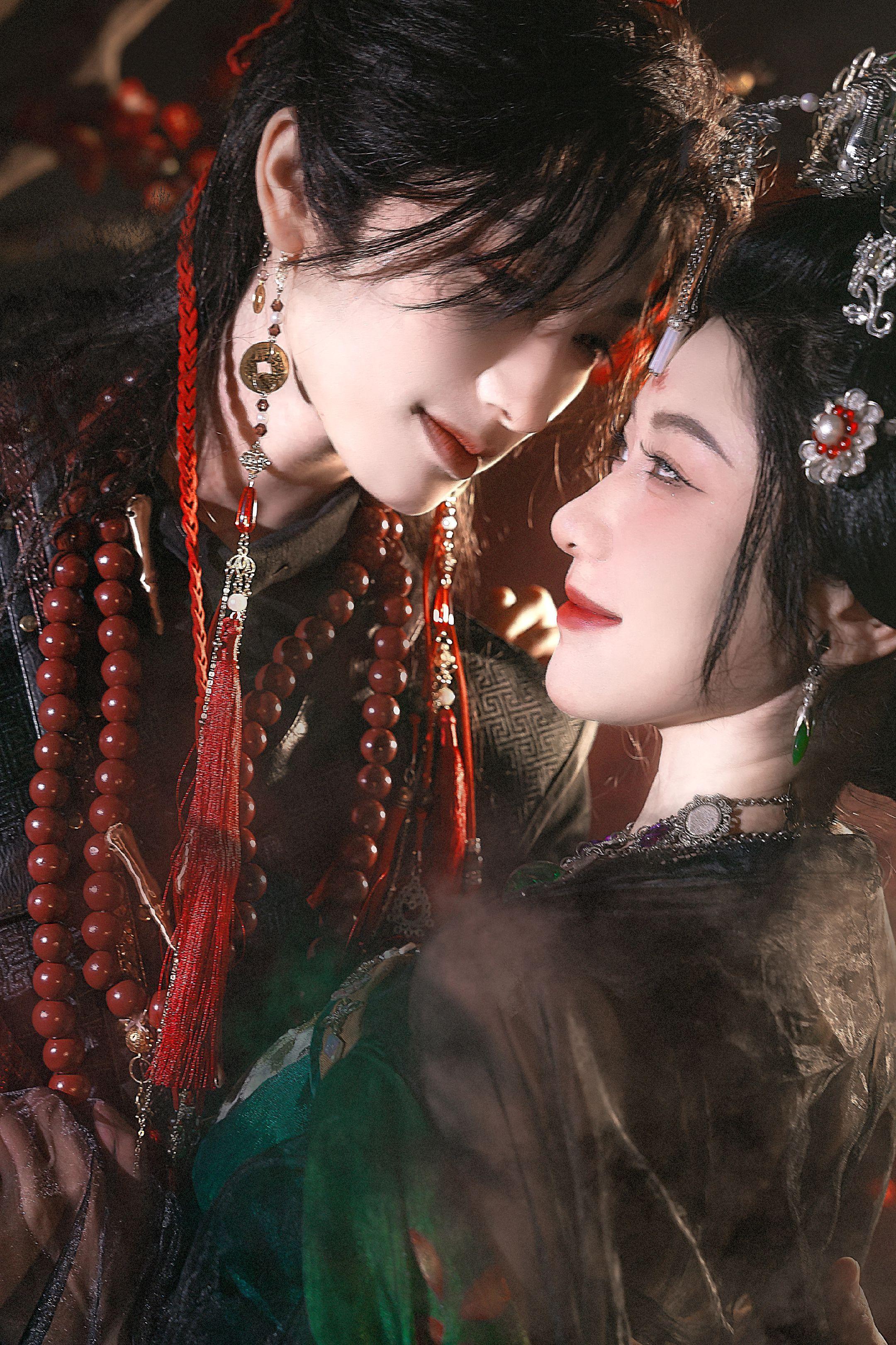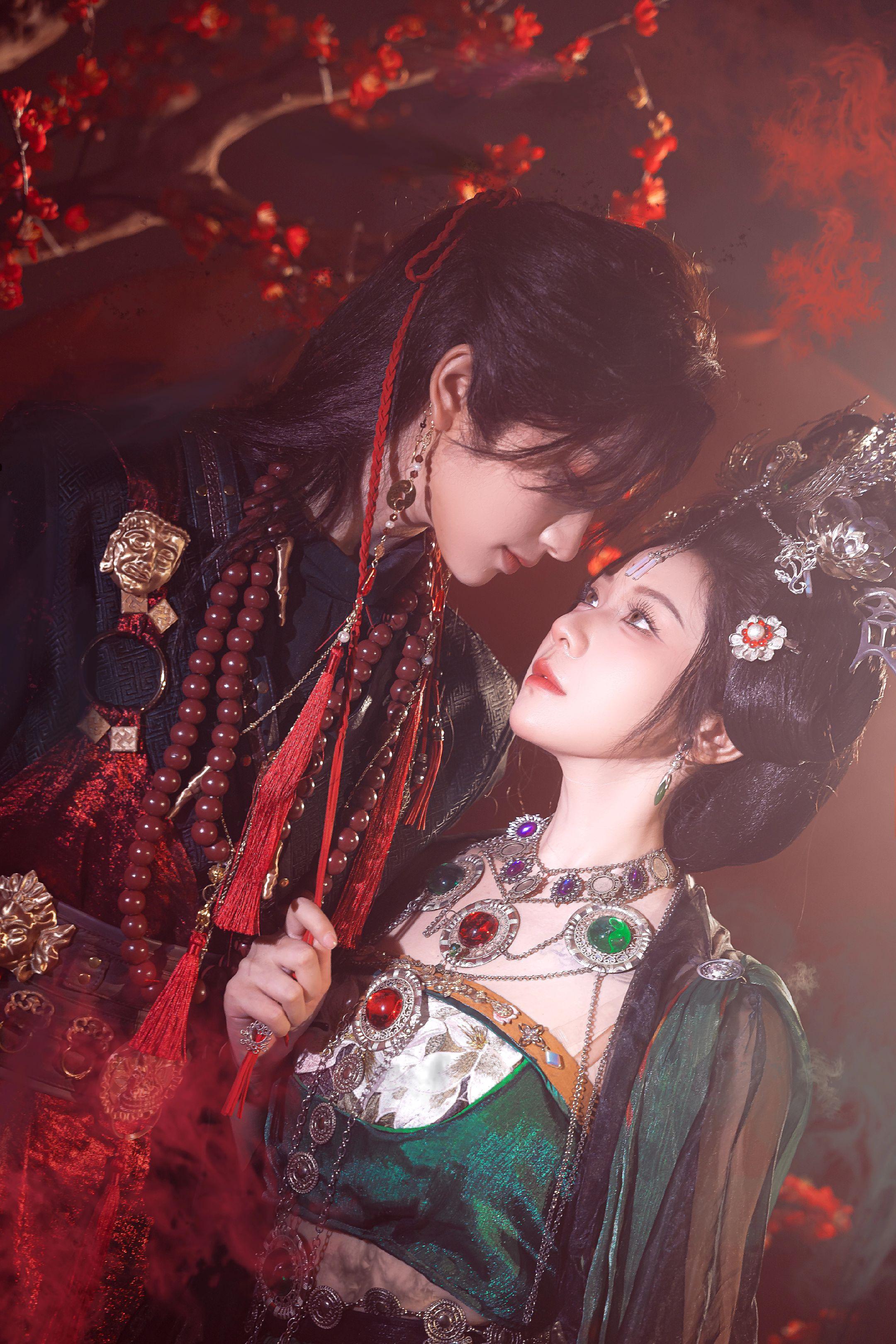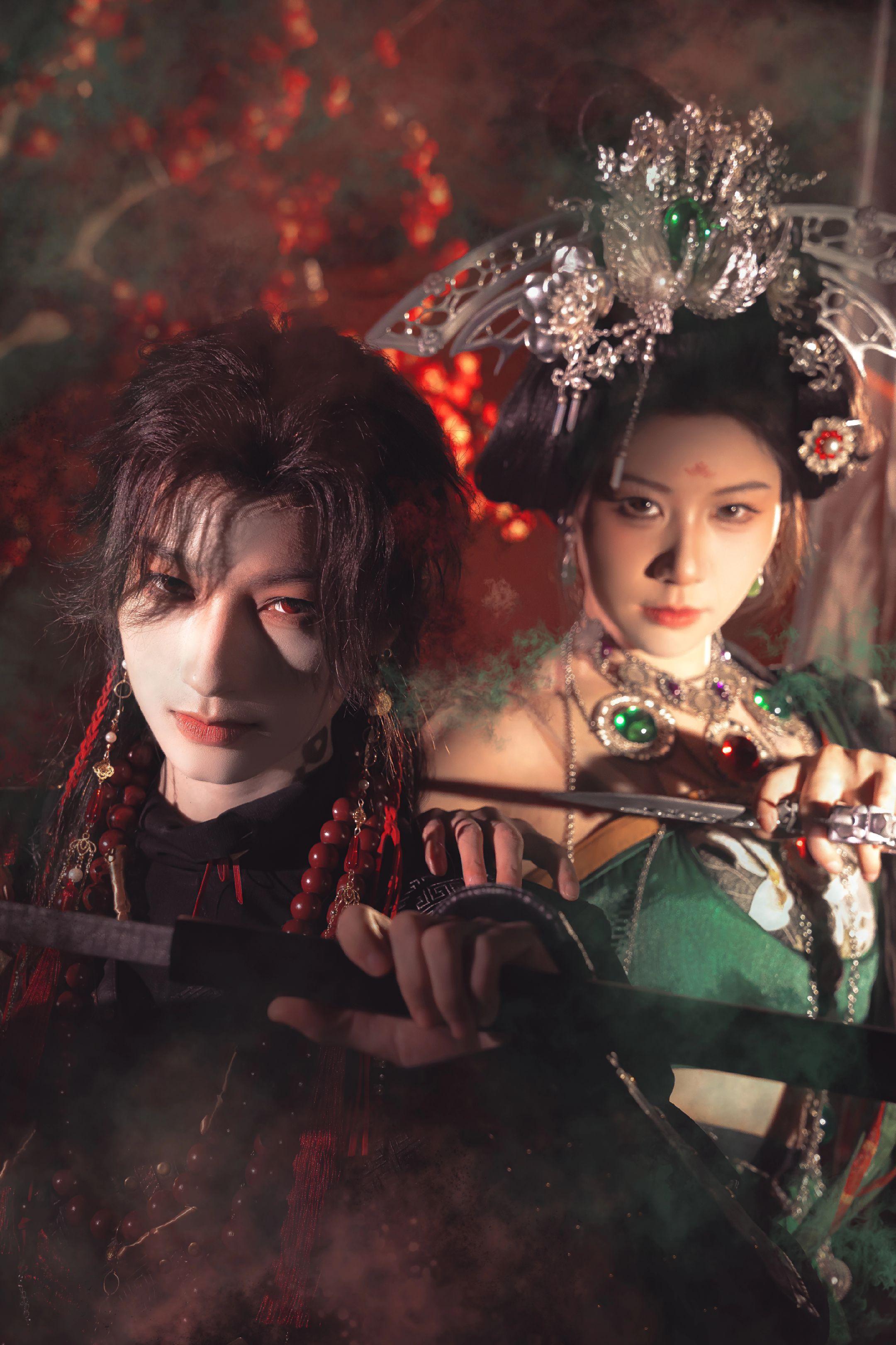 画皮娘子某,本工绘事。尝自描眉黛,铅粉扑额竟生鳞纹,原是爱美妖,胭脂着面即转青