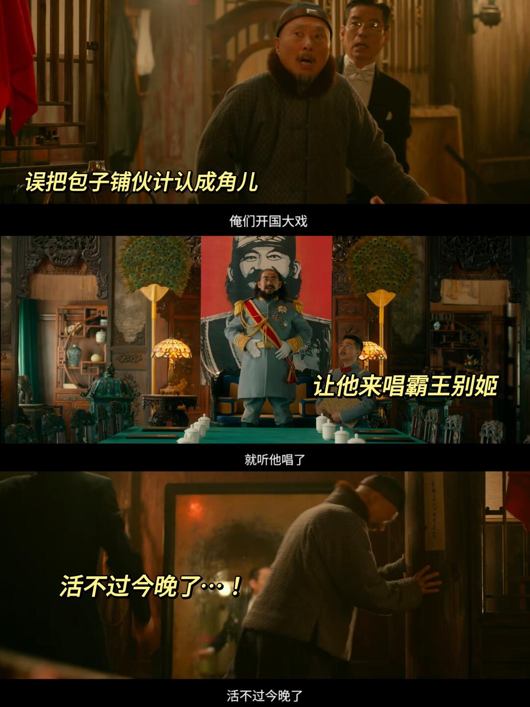 可刚攻城称王的洪大帅(姜武 饰)认错了人,指名让包子铺的伙计(黄渤 饰)唱这出《霸王别姬》👺