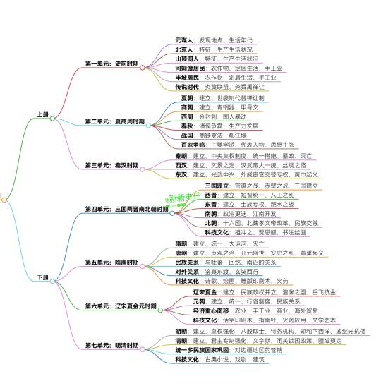 初一/七年级(上)历史知识要点及思维导图