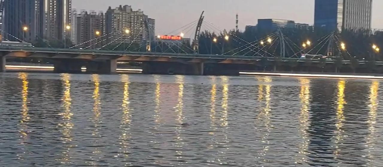 7月17日晚,天气热得像个大蒸笼,去太原汾河边散步。好家伙,河里好多人在游泳,就