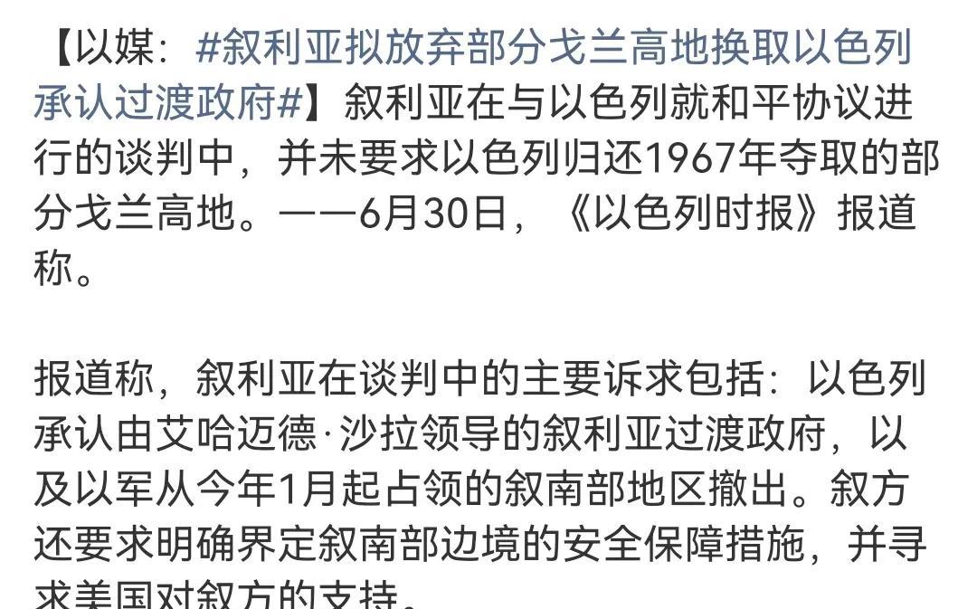 #叙利亚首都传巨大爆炸声# 已知: 一、“以色列不是一个扩张型的国家”(图1); 二、以色列是“一个负责任的文明国家”(图2); 三、叙利亚“拥抱文明”(图3、图4); 四、叙利亚向以色列割让了戈兰高地(图5); 五、叙利亚又被以色列炸了(图6)。 那么问题来了: 为什么一个“拥抱文明”的国家,在向一个“负责任的文明的,且不是扩张型”的国家割让了土地(戈兰高地)之后,还会被这个“负责任的文明的,且不是扩张型”的国家轰炸呢? 值得一提的是,图1至图4这几个无一例外都自诩站在“现代人类文明”一边,不仅挺乌克兰,还挺以色列,甚至在朱拉尼还在为推翻巴沙尔·阿萨德时力挺朱拉尼为首的HTS恐怖武装。 这就很有意思了,不禁让俺想起这样一句网络名言:俄乌分立场,巴以分人畜。 最后给大家一个填空题:挺乌又挺以,有一个算一个都是( )。 #巴以冲突# #热点观点#