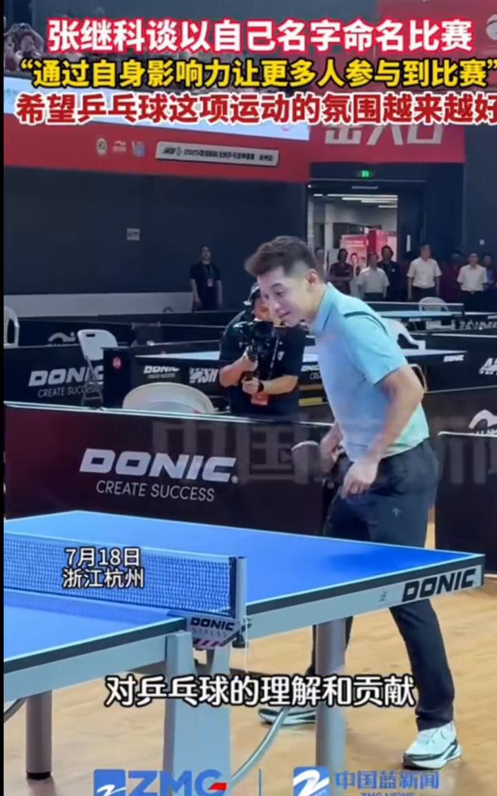 张继科谈以自己名字命名比赛,"通过自身影响力让更多人参与到比赛",希望乒乓球这项运动的氛围越来越好。 7月18日,浙江杭州。张继科谈以自己名字命名比赛,"通过自身影响力让更多人参与到比赛",希望乒乓球这项运动的氛围越来越好。