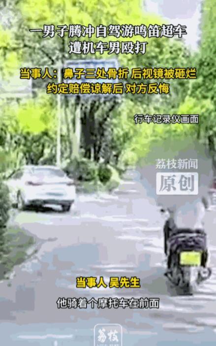 [胡瓜]“人狂必有天收!”5月5日,云南腾冲,男子自驾游,因为按喇叭吵了前方摩托车,就被对方追上来打碎后视镜。男子下车理论要求其赔偿,却被对方暴打,鼻子三处骨折。对方起初要赔偿14万换取谅解,结果后续反悔。 吴先生开车来到云南腾冲,这是他梦寐以求的自驾旅游,本来是值得高兴的事情,可在旅游的过程中却发生了令他意想不到的“插曲”。 5.5日,当天吴先生在路上正常行驶,他想超过前方的摩托车,就鸣了几声喇叭。这就是一个正常的举动,前方的骑手却跟“吃了枪药”一样,扭过头就对着吴先生大骂脏话。 吴先生心里非常生气,不过看骑手情绪这么不稳定,为了行驶安全他就没有回击对方,只是踩了油门超过了摩托车。可骑手并不打算就此作罢,看到吴先生超车,他马上加油冲了过来将左侧后视镜砸碎。 吴先生吓了一跳,于是停车和对方理论,要求骑手赔偿他的后视镜。骑手根本不讲道理,支好车子就对吴先生动了手。他一拳打在吴先生的面门,吴先生被打了一个踉跄,随后骑手将吴先生的脑袋按在车头暴揍,单方面的挨打导致吴先生的鼻梁骨有3处骨折,后续鉴定为轻伤二级。 随后警方将骑手逮捕拘留,骑手张某年仅20出头,骑手的家属表示愿意赔偿吴先生十四万以求吴先生签署谅解书,结果张某被拘留14天取保候审以后,仅仅垫付两万五,先前的态度就消失了。他们表示十四万赔偿不了,最多在2.5万的基础上再加上1-2万元。 对方出尔反尔,吴先生只能走法律途径,可是法院却给出缓刑的量刑意见。这是张先生不能接受的,轻伤二级已经达到行驶连标准,而且从吴先生提供的行车记录仪当中明显可以看出张某存在主动挑衅和持续殴打,并且事后没有和解诚意等等一系列的严重情节。”法院却以“情节较轻”打算对其轻判。 吴先生将此事件公开,一时间在网上“炸开了锅”。有网友说:“之前拿十四万求和,后面又不愿意了,这很明显有靠山了。”还有网友说:如不严惩,势必助长其挑衅公共安全的底气。同时严查严办办案人员对挑衅者的纵容包庇 还有腾冲的网友表示:如果这次的事件没有处理好,肯定会影响城市形象,影响腾冲的旅游业发展。 此案件,目前定于7.10日开庭审理,此案的最终判决,不仅关系到吴先生的个人权益,更关系到公众对法治的信心。若能依法严惩施暴者,明确传递 “暴力必受追责” 的信号,将有助于修复社会信任;反之,若因 “情节较轻” 等理由轻判,则可能加剧公众对司法公正的质疑。 信源:男子腾冲自驾游鸣笛超车被打骨折 男子超车被打对方提出赔14万又反悔