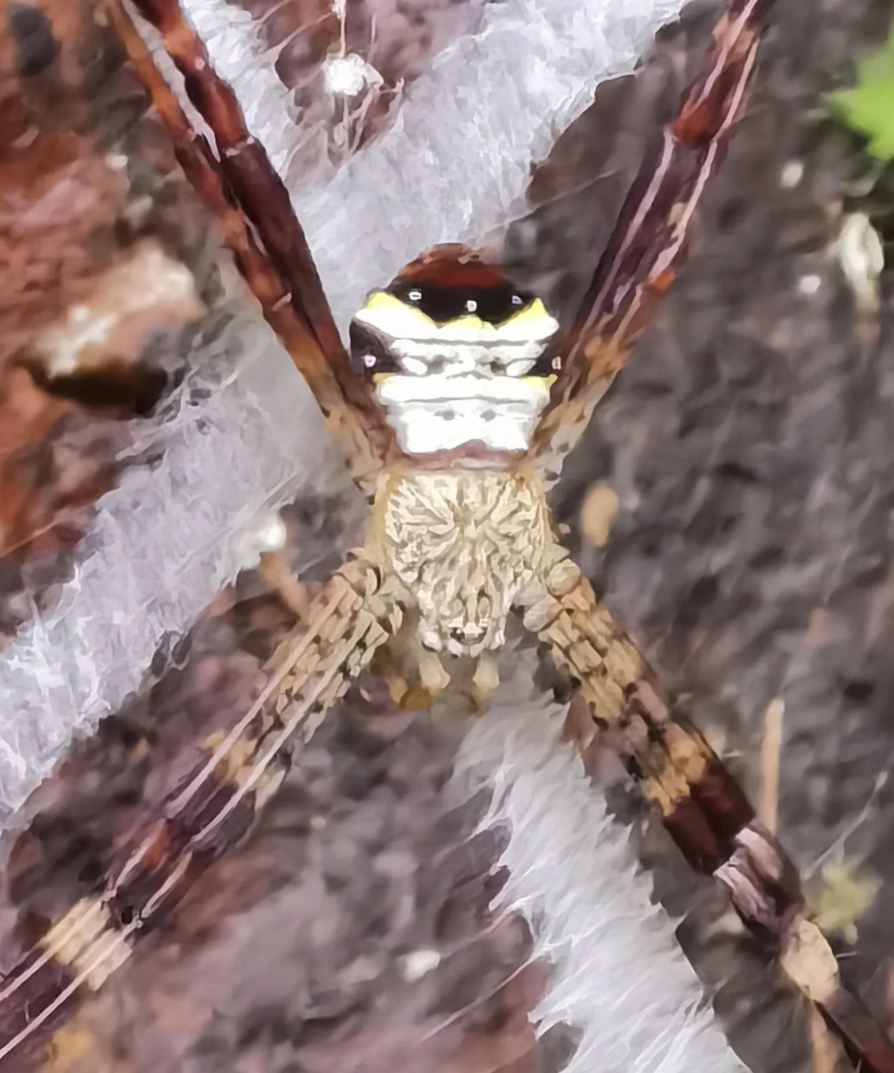 在广西金秀的盘王界景区的栈道上,路旁的岩壁上有一个非常奇特的蜘蛛,吐出来的丝呈十字型,有认得这是叫啥蜘蛛的吗?