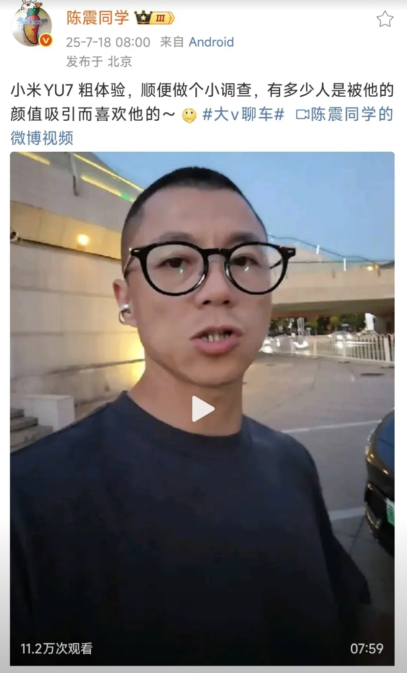刚看完陈震同学 震哥对小米YU7的初体验视频,我帮大家简单总结一下:
