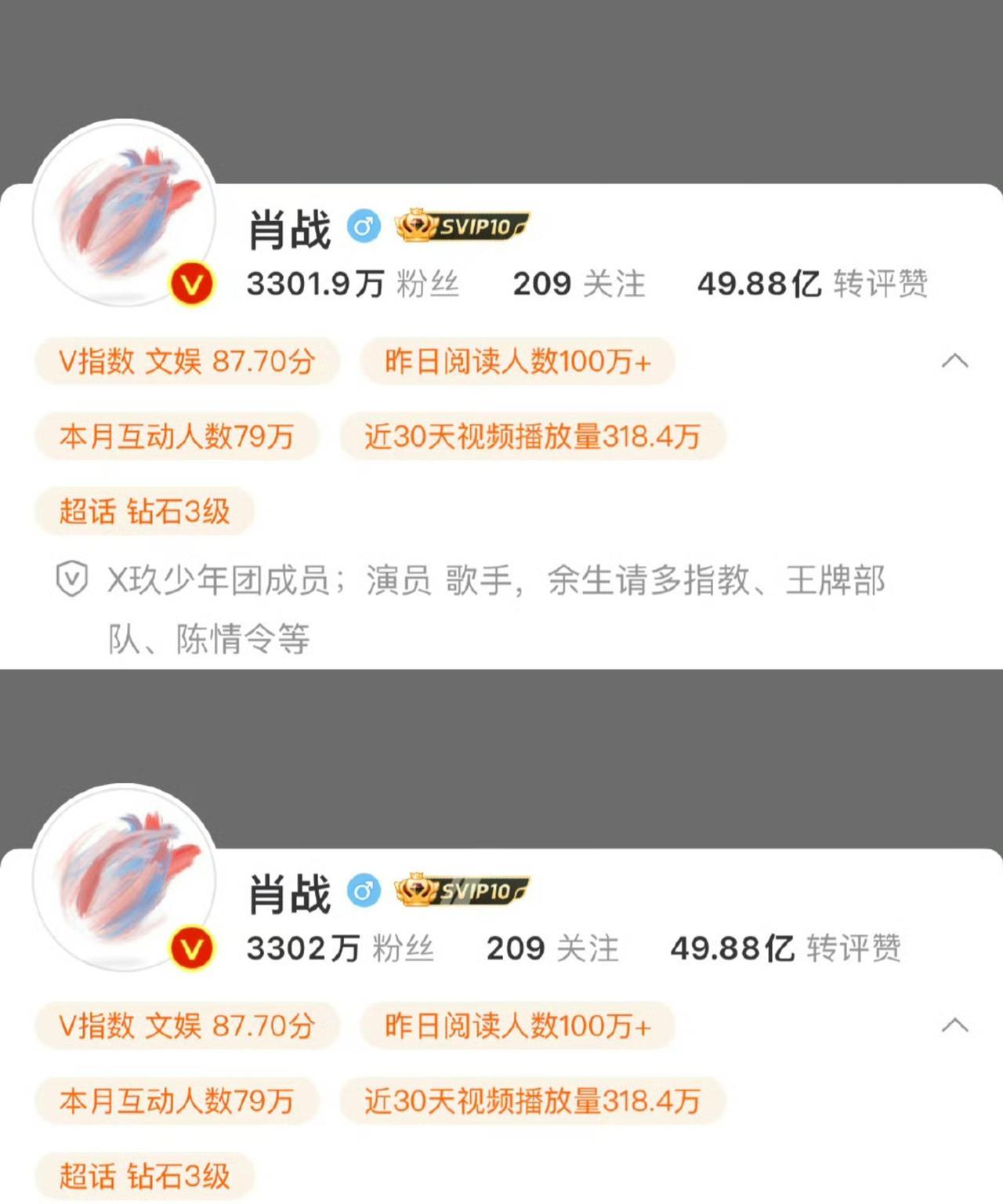改昵称,改简介。 肖战这2个动作,意味着什么? 对比一看就知道了。 改昵称,直接去掉团名前缀。“肖战”终于只是肖战。不是某某团的肖战,而是演员、歌手肖战。 至此,肖战不用被分钱了。 改简介,删掉代表作《余生请多指教》、《王牌部队》。只留3个代表作《藏海传》、《梦中的那片海》、《陈情令》。 为什么留这3部作品?当然这3部,他是绝对的大男主啊! 《陈情令》是他顶流的开始!《梦中的那片海》是主流的代表作,《藏海传》则是大男主的起点。 肖战,此后继续走花路啊!