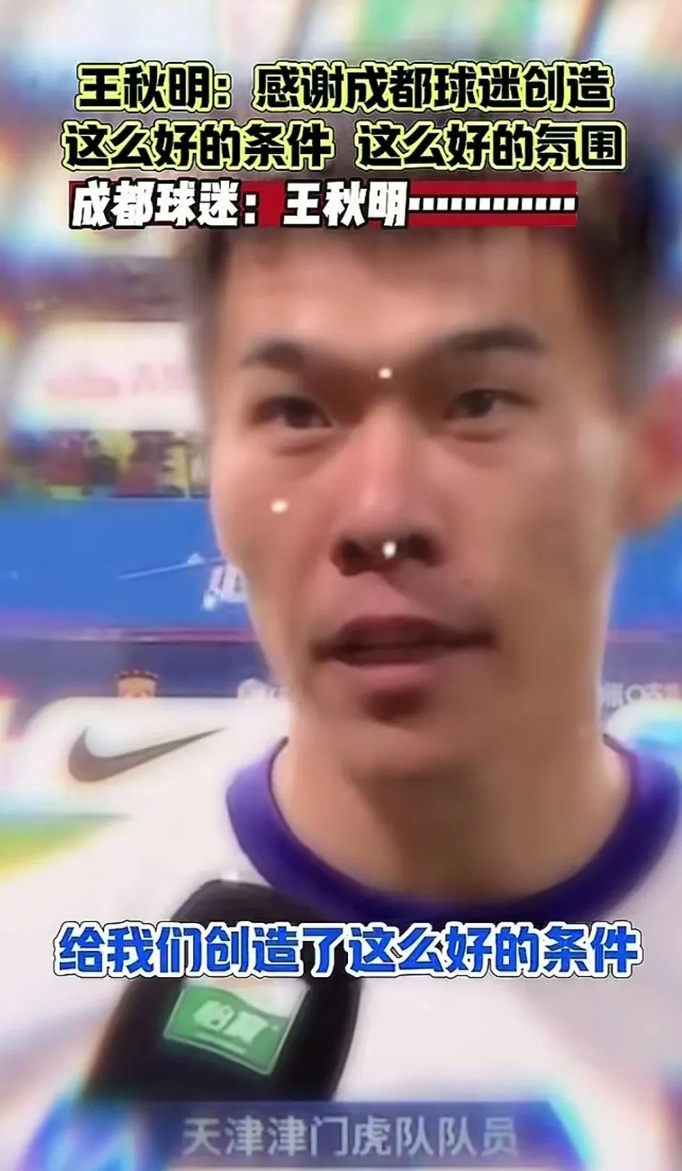在成都蓉城主场,王秋明是这么说的。 非常感谢成都球迷,给我们创造了这么好的条件,