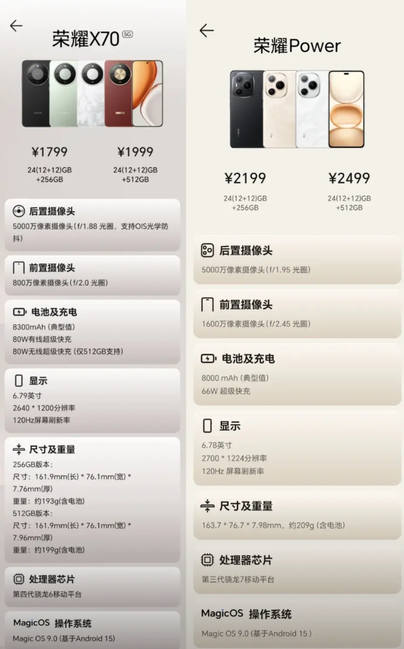 感觉手机买早了,肠子悔青了,荣耀X70早点发布该有多好 两千以内可以买到8300mAh电池+80W有线快充以及IP69K满级防水的手机,目前就荣耀X70独一份 之前给家里人买了荣耀Power,不过整体比下来荣耀X70还是要强出一截 别跟我说骁龙6Gen4芯片不行,不是谁都有时间天天玩几个小时的游戏,这个芯片日常用问题不大