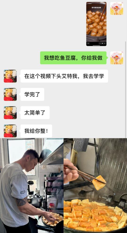 下午他忙个差不多,就会抽空给我发消息:“晚上想吃啥?”等我回到家时,厨房一定飘着熟悉的烟火儿,他一定系着围裙颠着大勺,听到我回来会回头冲我乐。