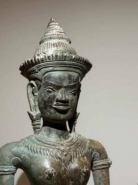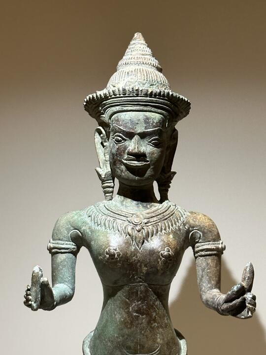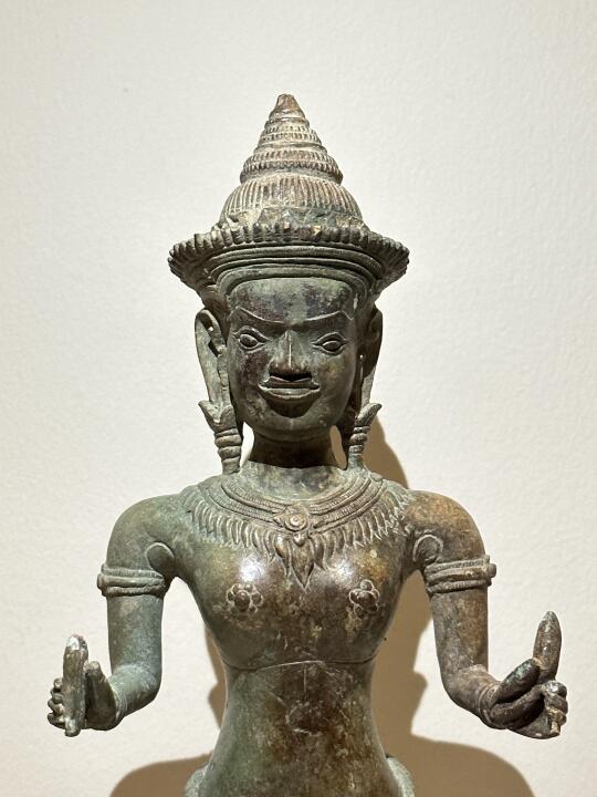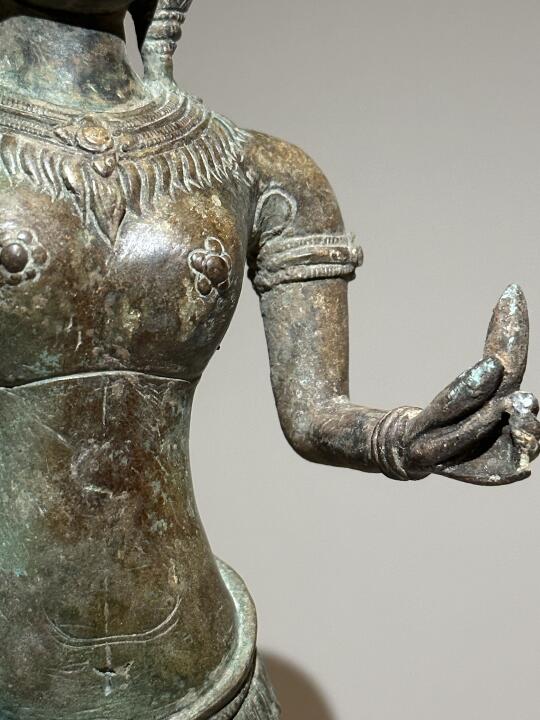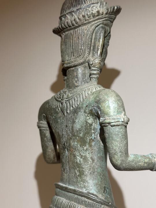 这个月最惊喜的收获,30cm大尺寸的Prajnaparamita般若佛母青铜造像,感谢朋友转藏!到代的大尺寸高棉青铜一直想拥有一尊但是一直没遇到合适的,这件无论是铸造细节还是地域特征的开脸都是我近期比较喜欢的,甚至皮壳锈色也是。