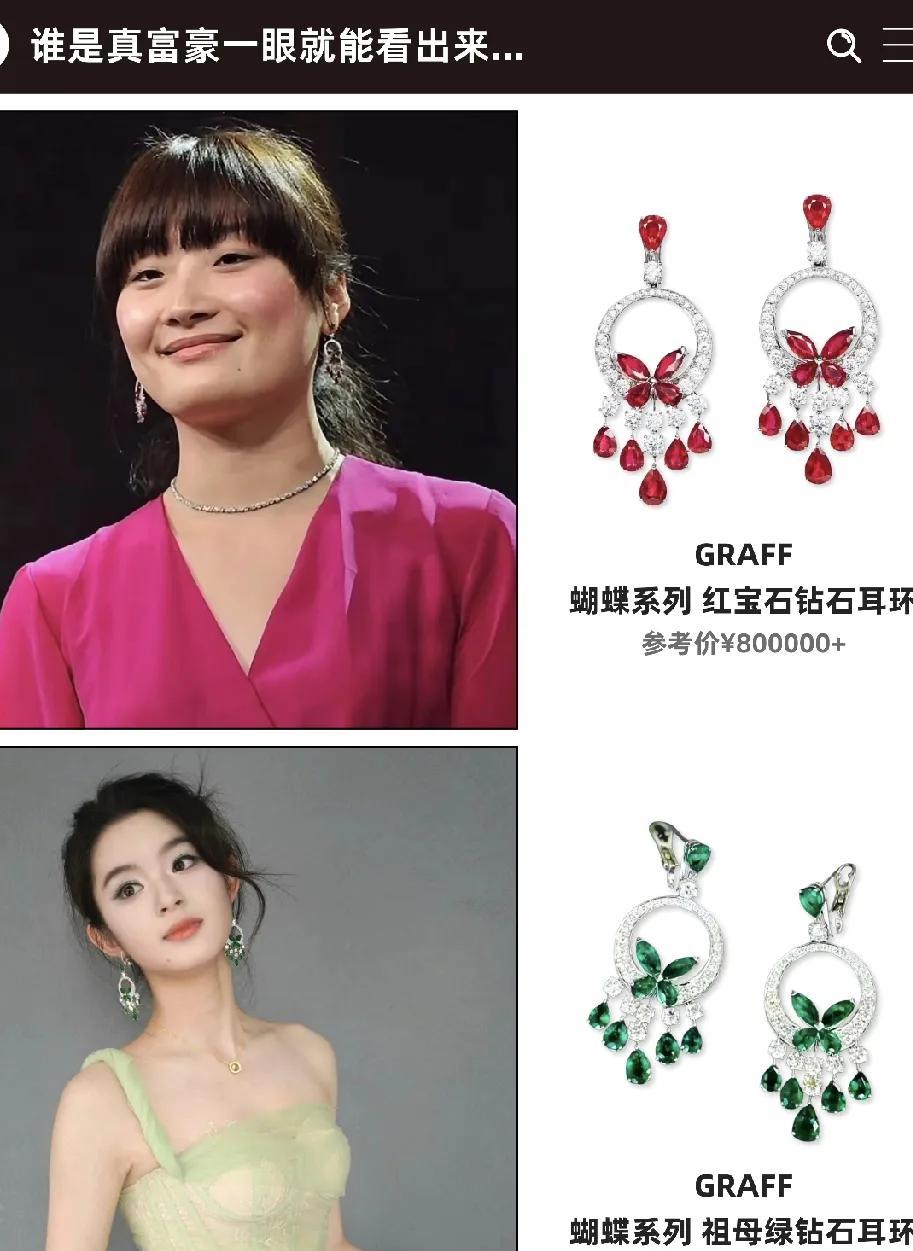 黄杨钿甜的耳环真不真不知道,但宗馥莉的耳环绝对是真的,两人戴的耳环款式挺像的,不知道是不是同个品牌? 宗馥莉的实力与消费能力大家都知道,作为娃哈哈的公主,她在物质生活上并不缺乏,只是看她的爱好愿不愿意购买? 两者一对比,才知道宗馥莉真的好低调,自带气场。#宗馥莉公主# #分享你今日的生活感悟。#