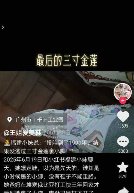 一对夫妻在埃塞俄比亚打工,女儿从小给奶奶带,三年后回国,竟看到了让他们惊呆的一幕,奶奶强行给女儿裹小脚,如今女儿26岁却有一双三寸金莲,要买特制鞋才能下地。6月28日视频中,奶奶的陈旧思想真害人!而可怕的是,评论区很多和她一样遭遇的女孩,九十年代出生都没逃过三寸金莲的命运。 女孩出生的年份是1999年,不是1900年,自从建立新时代以后,人们的思想都开放了,怎么还会有她奶奶这样的老顽固? 裹小脚,除了是封建陋习外,对于女孩的身体更是一种故意伤害!她上学期间,从没有进行过体育项目,就因为她封建的奶奶给她裹足,让她连脚趾都分不开,平时走路都困难,就更别提跑步跳跃了。 不夸张的说,女孩的一生都被奶奶毁了!看来这十几亿人口里,还存在一些思想十分陈旧的人,给自己裹脑,给孙女裹脚,实在是太可怜可恨了。 (每天更新您关心的事,欢迎点赞关注,转发给朋友一起探讨!) 对此大家有什么看法?