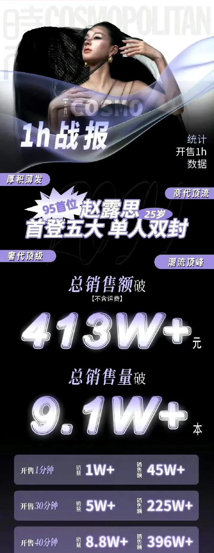 #分享城市新鲜事# 赵露思第二本五大《ELLE》杀疯啦!销售额破300w、销量