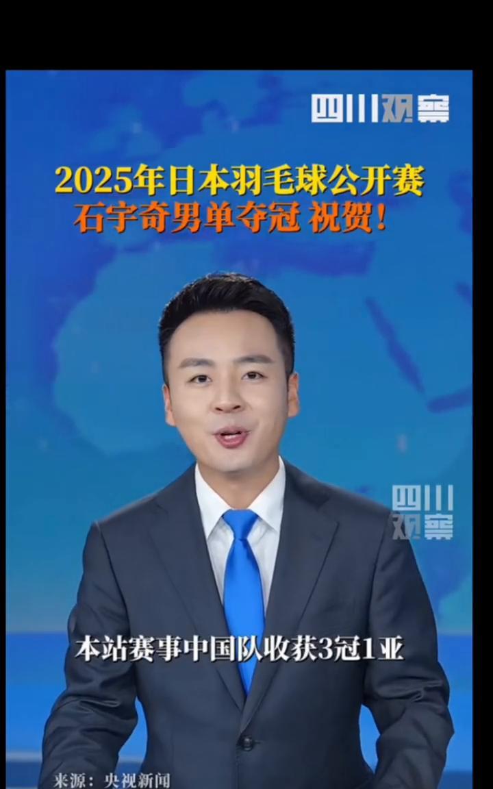 2025年日本羽毛球公开赛,石宇奇男单夺冠祝贺! 四川观察。 恭喜石宇奇,国羽男