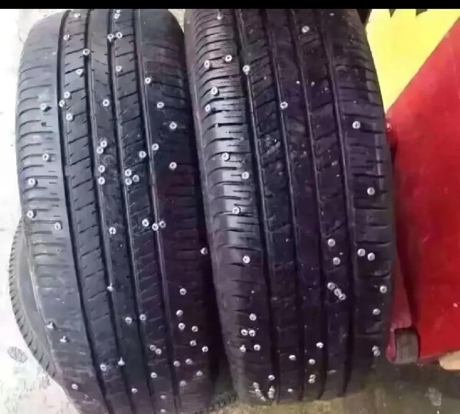 这哪是扎一下,那是多少钉子?轮胎直接废了。