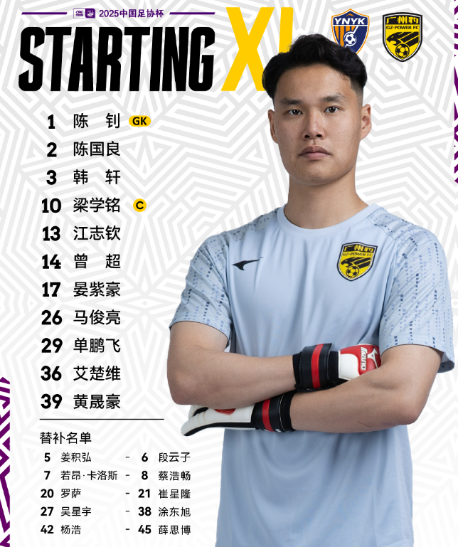 首发阵容方面,广州豹队包括艾楚维、黄晟豪、江志钦在内的多位年轻球员进入先发。陈钊把守城门,梁学铭担任场上队长。云南玉昆此役则派出三外援,侯永永进入首发。后防线上,李松益、唐淼出战。赵宇豪戴上队长袖标。