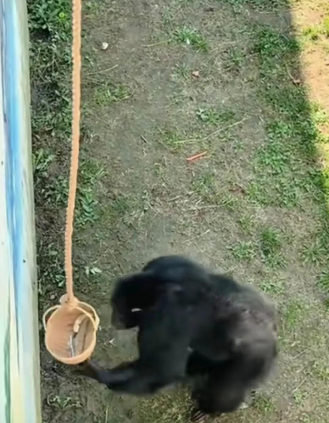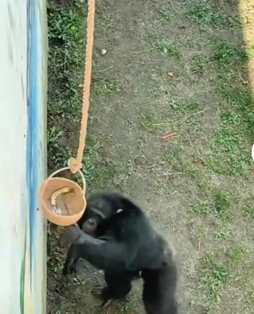 动物园里面,游客的太阳镜不小心落入大猩猩园内,游客只能去找动物园的管理人员,管理人员拿来一个吊着绳子的篮子放入大猩猩的园内,喊着大猩猩的名字,让它把地上的太阳镜捡起来,放到篮子里,大猩猩非常的聪明,它听懂的管理员的话了,慢悠悠的把地上的太阳镜捡起来放入篮子里,管理员迅速将篮子提上来,顺手给大猩猩扔了一块饼干,作为给大猩猩的奖励。
