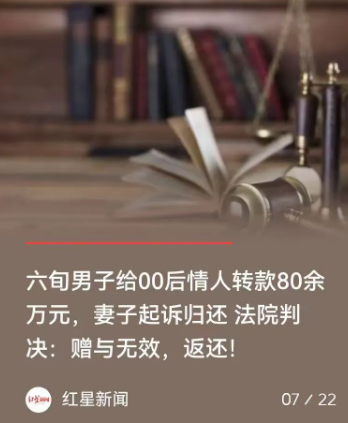新疆乌鲁木齐,69岁已婚男子去唱歌时,和小自己40多岁的女子发展成情人关系,三年给她转账82万余元。三年后男子的妻子得知此事,一怒之下起诉女子,要求她返还82万余元。 这样的现在挺多的,白玩几年,然后打官司再要回来。甚至还有几个老板合伙开公司,轮流包养情妇,用公司钱 走公司的账,最终其他合伙人以不合法为由上告,把钱要回来,人白玩。 这不公平!你这是白嫖还要利息太不仗义比流氓还坏。这老东西是个高手啊,他老婆也是高手,老东西白嫖几年,还能把钱收回来,高高手! 69岁的爷们,白嫖小妞几年?太不公平了!男的就没错了,白嫖白耍,这以后男人们可威武了。