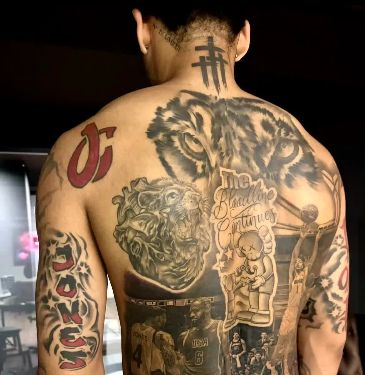 真爱了!琼斯将自己与偶像詹姆斯握手的瞬间,纹在了自己的背上! 琼斯表示,勒布朗詹姆斯是他从小到大的偶像,很高兴之前有机会跟詹姆斯接触,他对此很激动! 所以,琼斯决定把老詹纹在自己身上,不断去激励自己变得更好! 这就是偶像的力量,非常正能量! 老詹看到之后,也是为琼斯送上祝福,并直言:“这很酷,兄弟!” 很多人说追星不好,其实只要不沉迷,适度追星,还是可以让自己得到进步的! 但如果太疯狂,那可能会伤害自己,也伤害别人! 詹姆斯确实是优质偶像,这也是他受到这么多人喜欢和支持的原因! 如果你喜欢一个球星,你会把他纹在身上吗? 不过由于文化不同,中国人喜欢球星,一般会买球衣和海报,纹在身上的确实挺少!