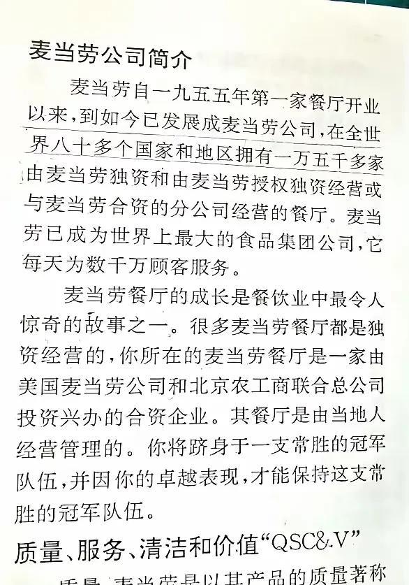 这是九零年代,北京麦当劳的员工手册#麦当劳#