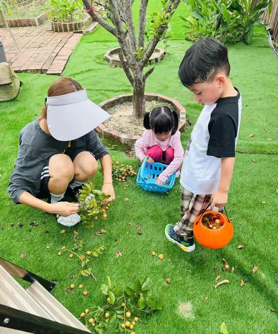香港明星杨怡罗仲谦夫妻携一双儿女体验摘黄皮!这两个好有夫妻相,恩爱如初,希望他们