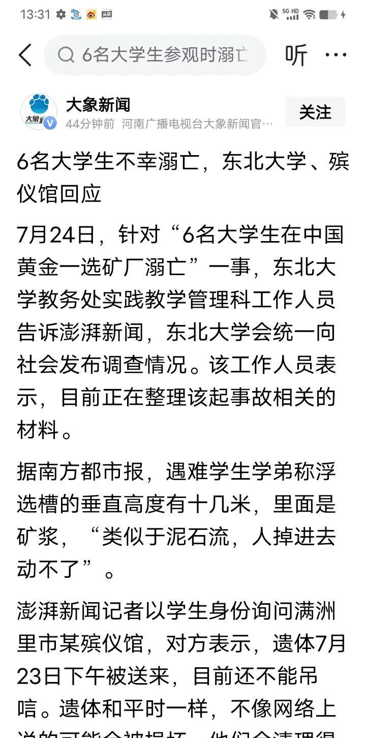 自媒体说东北大学掉进筛选池的6名学生不是溺亡是被粉碎,老师不是受伤是失去一条腿。