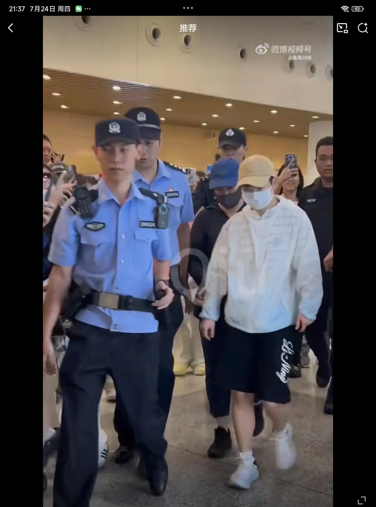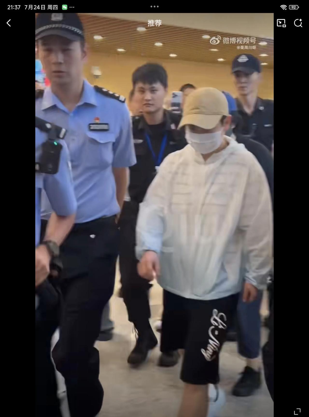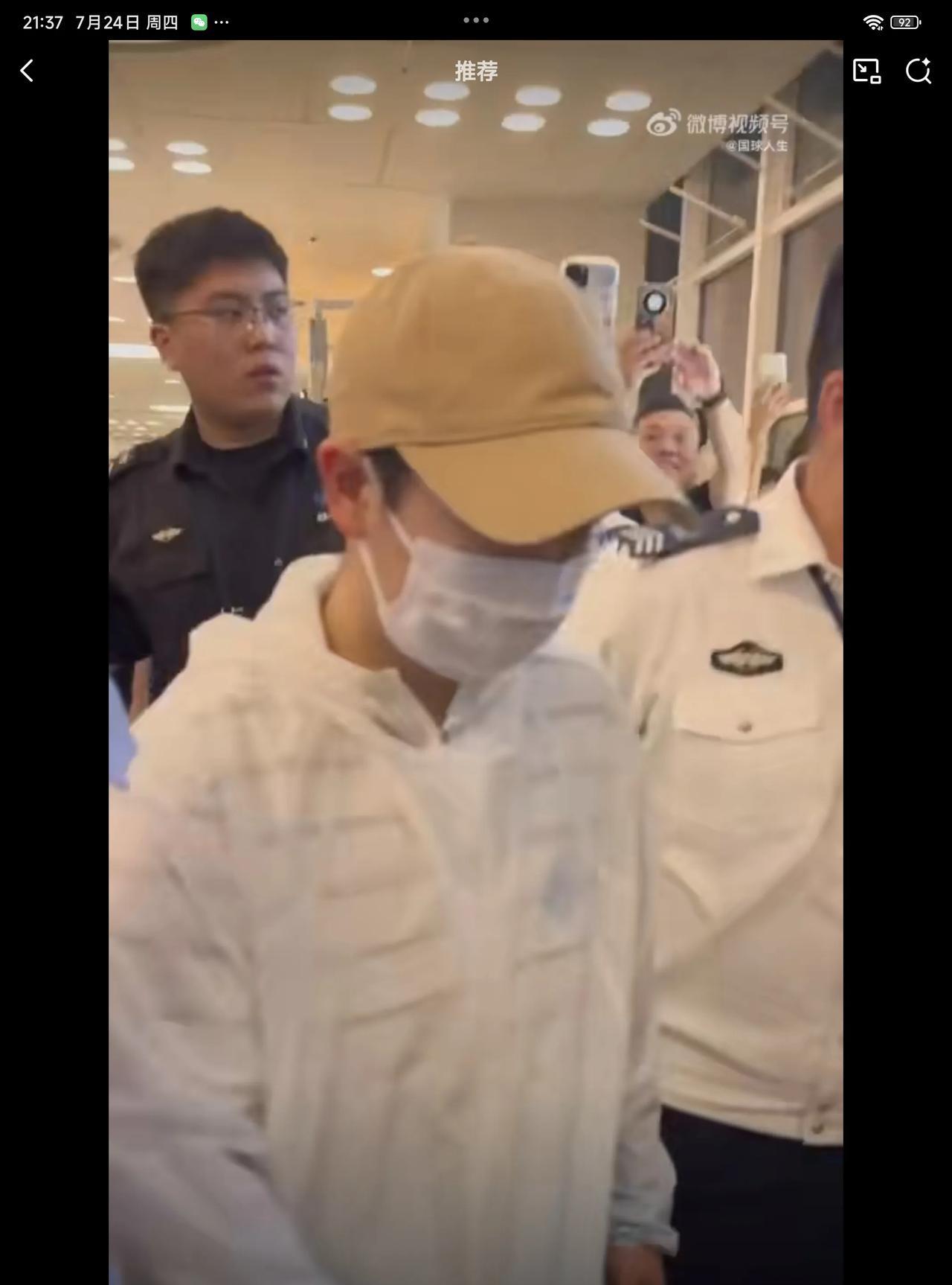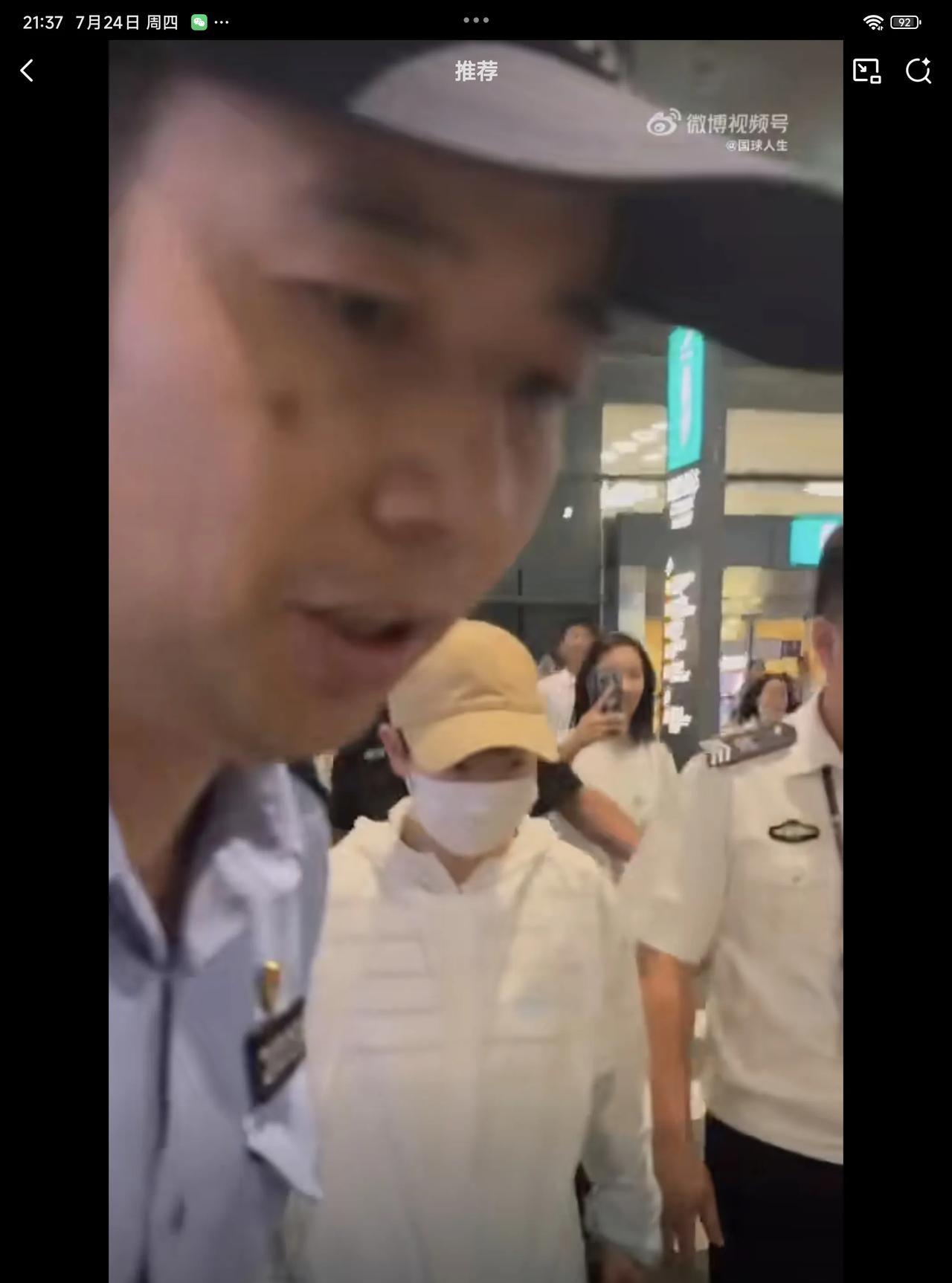 07月24日,孙颖莎抵达厦门,被一群粉丝围得拍照,机场出动安保人员护送孙颖莎突出